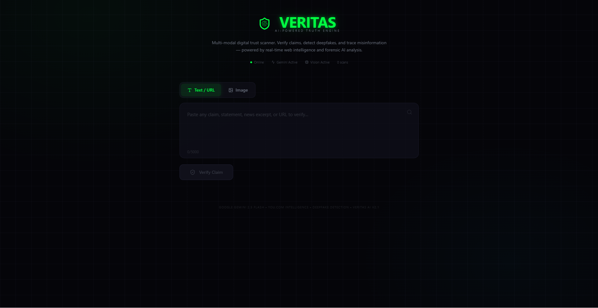 Veritas AI is a comprehensive forensic dashboard that analyzes: