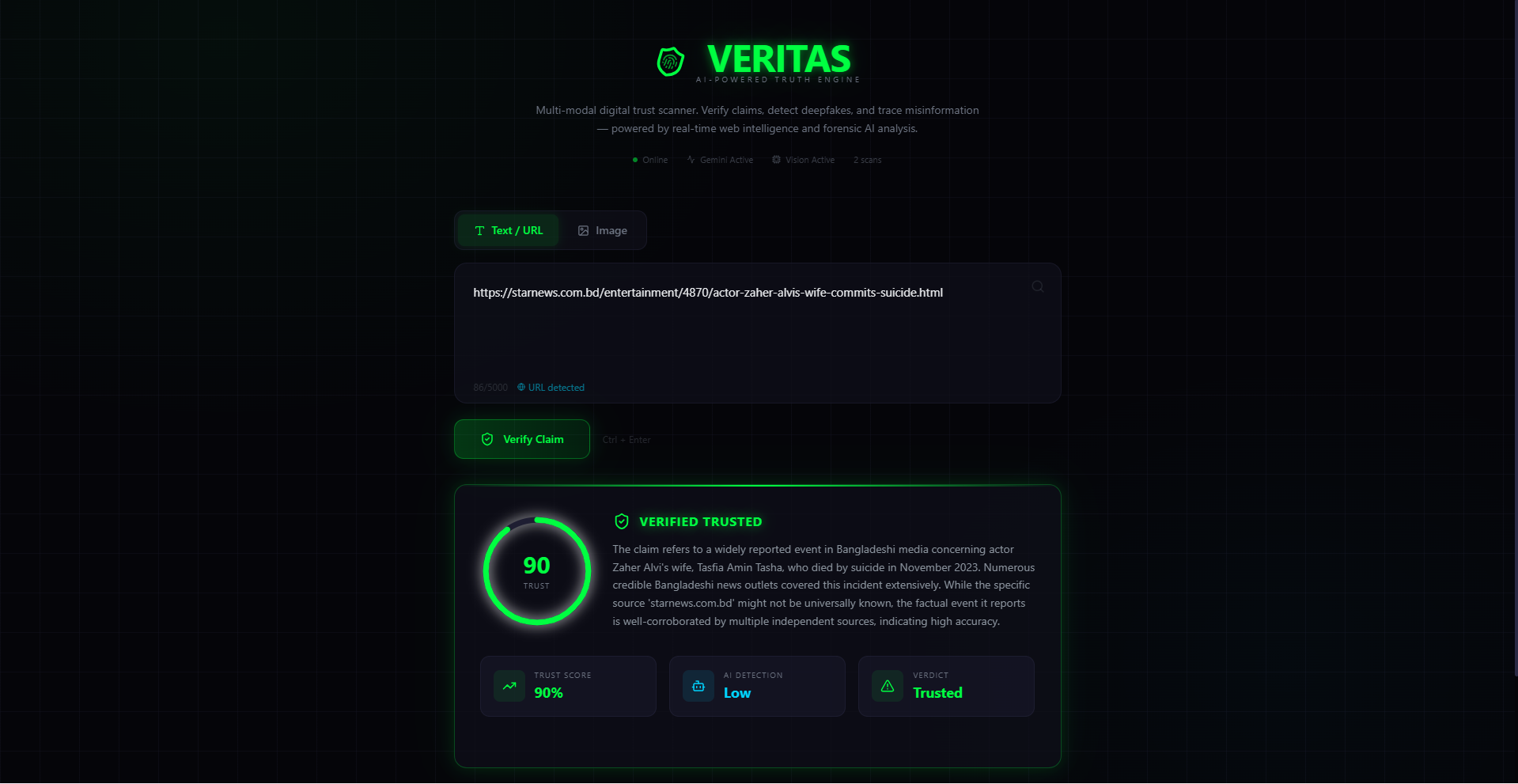 Digital trust is collapsing. The BBC fake news report of Donald Trump banning X is just one example of how AI-generated misinformation can destabilize society. We built Veritas AI to close the "Truth Gap."