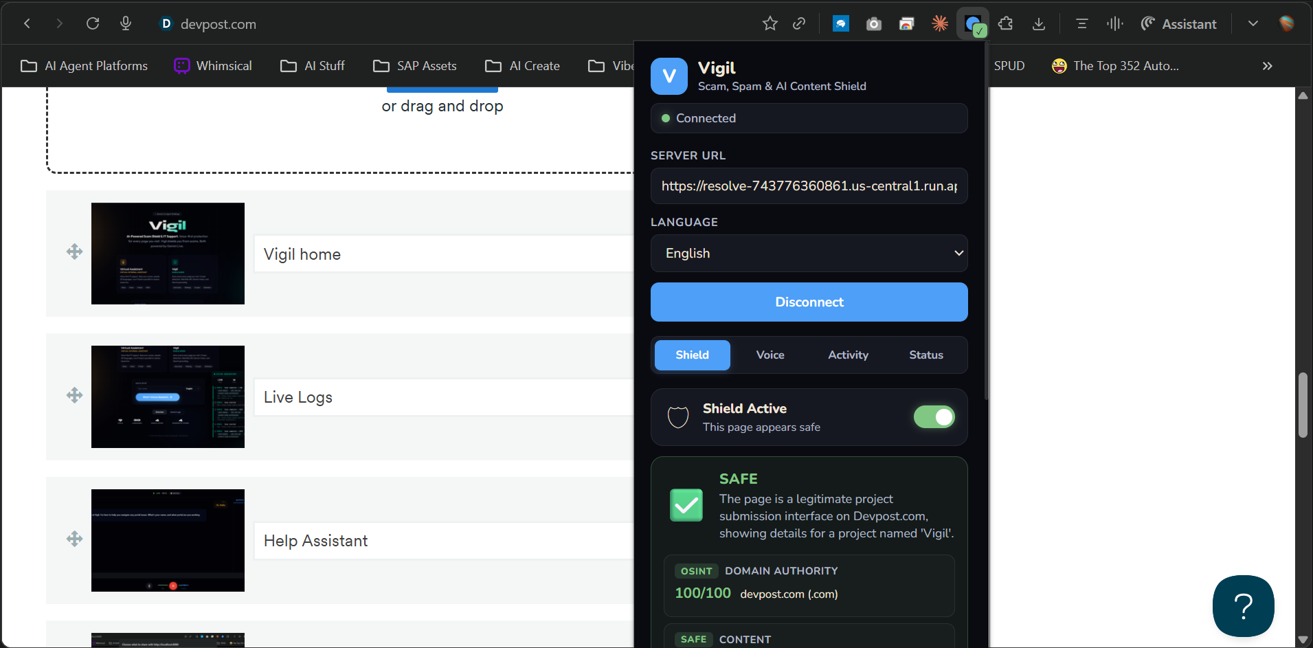 1. Vigil Shield — 5-Layer Scam Detection (Chrome Extension)