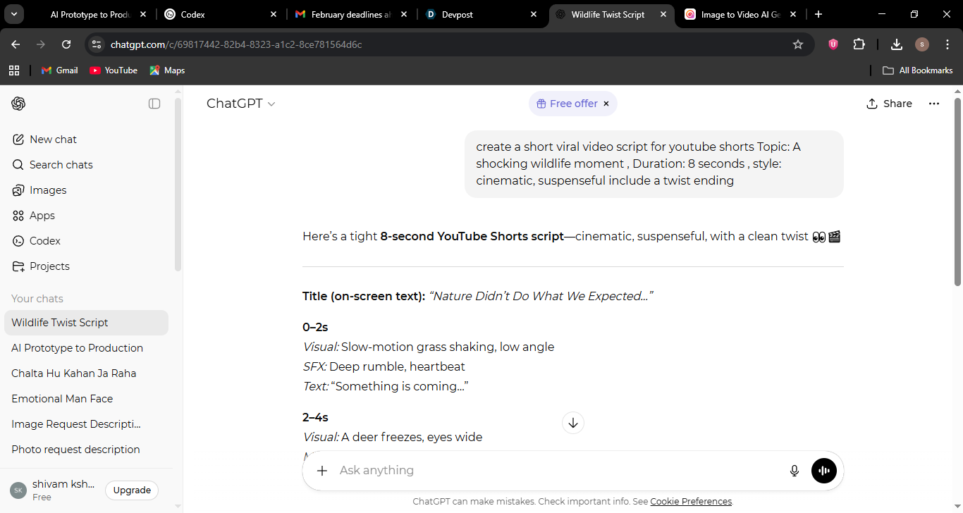 Short-form video creators spend too much time jumping between tools to turn ideas into videos. I wanted a simple, repeatable workflow that can convert one idea into multiple viral-ready short videos quickly.