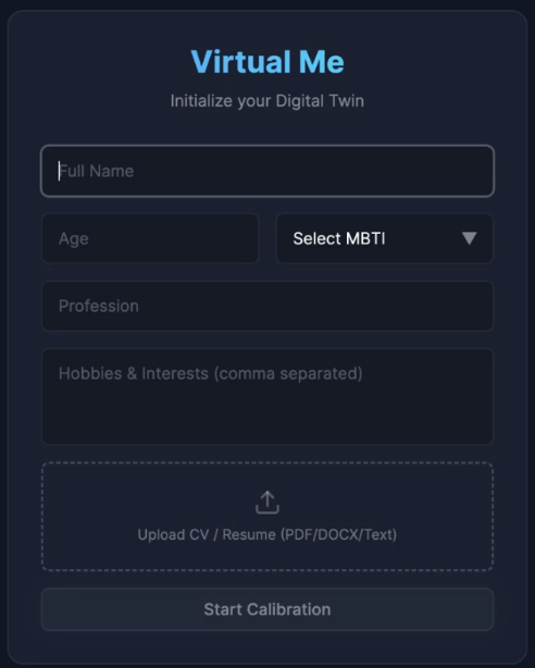 Virtual Me creates an interactive “Digital Soul” from real-world signal (CV + interview), then lets you talk to a low-latency twin that responds using your logic and style.