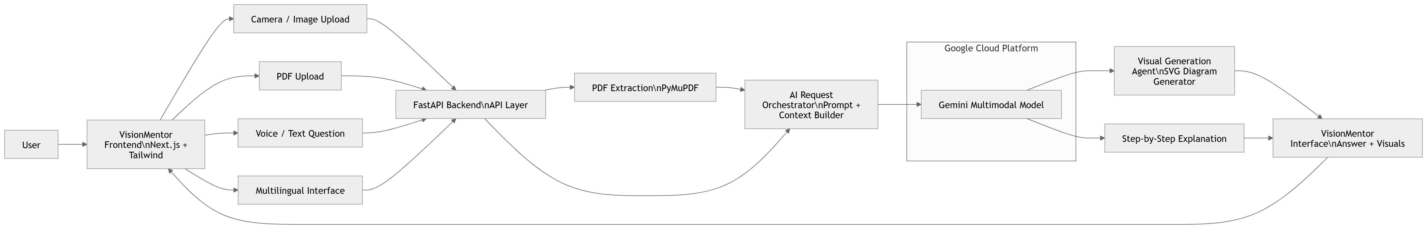 VisionMentor was inspired by the idea of building an AI tutor that behaves more like a real teacher—one that can understand what the student is looking at, listen to their question, and explain concepts clearly.