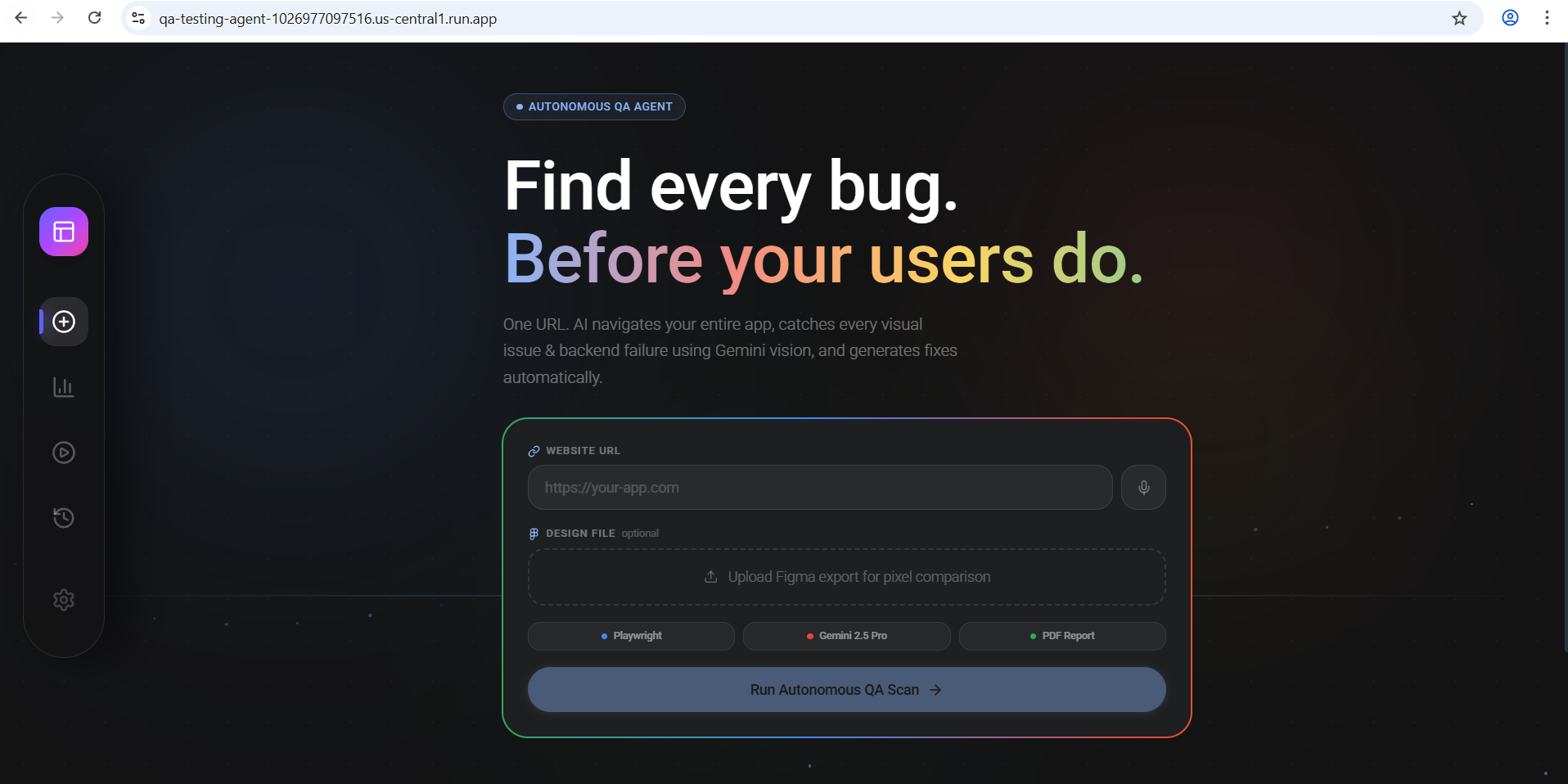 I built the QA Testing Tool to be more than a utility; it’s an autonomous brain for your application. It perceives your UI with a human eye and inspects your backend with surgical precision. No scripts. No setup. No compromises. One URL, and the AI does the rest. Testing is finally automatic.