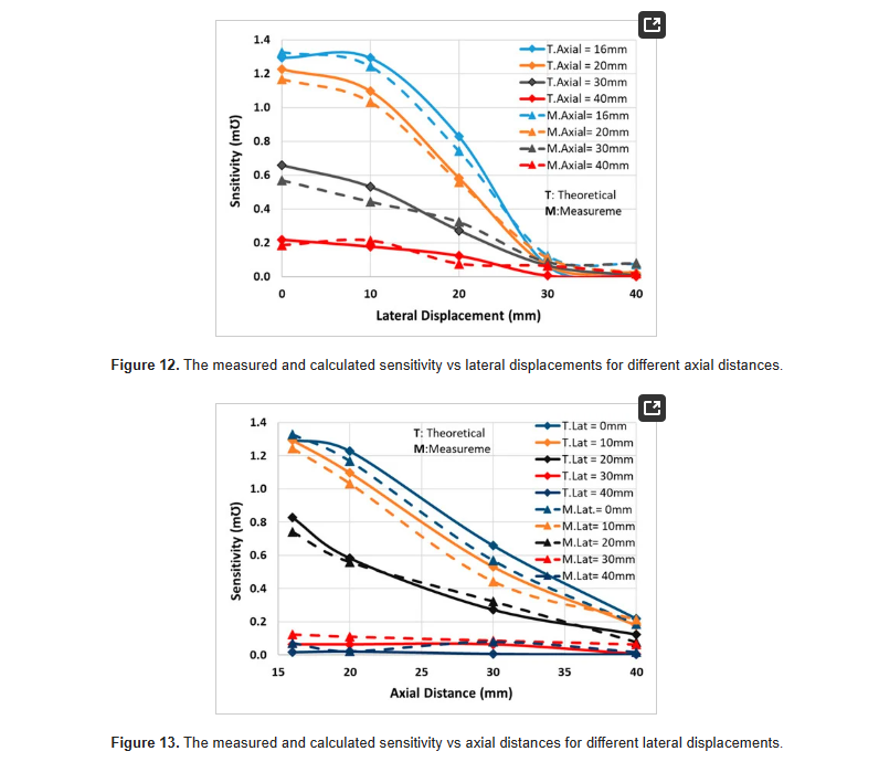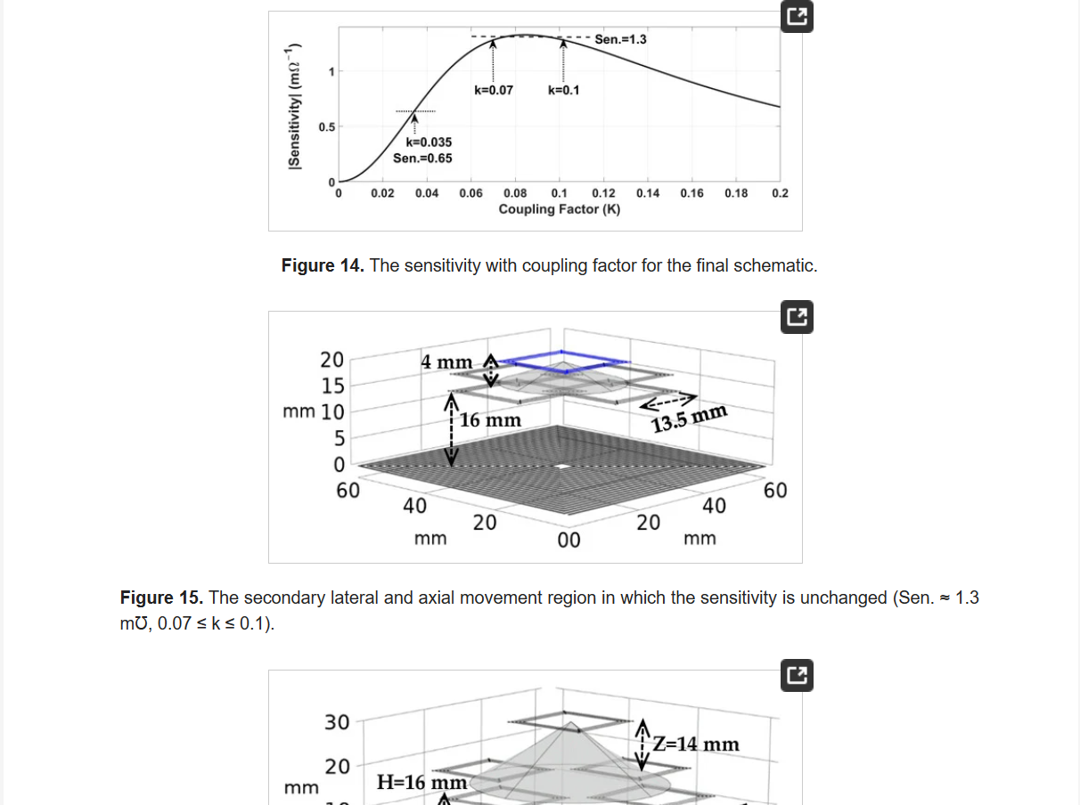 Figure 15. The secondary lateral and axial movement region in which the sensitivity is unchanged (Sen. ≈ 1.3 mƱ, 0.07 ≤ k ≤ 0.1).