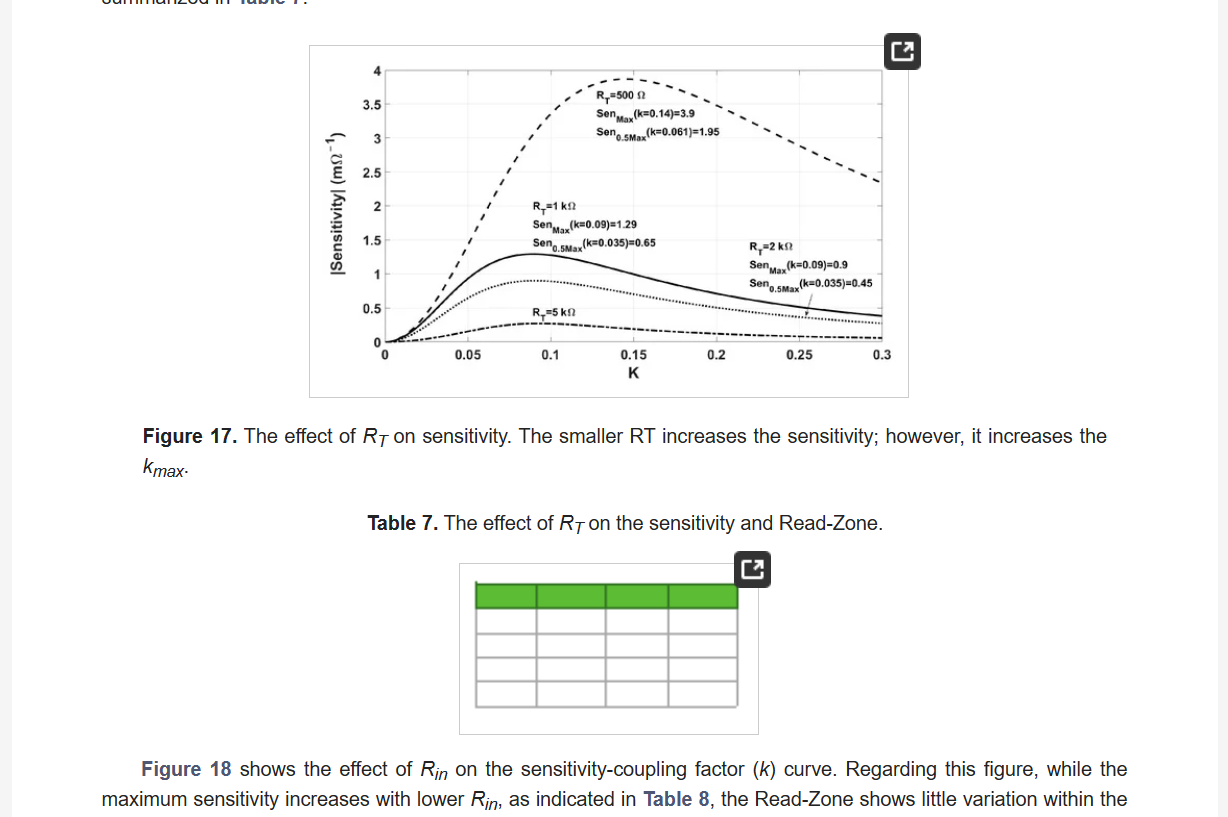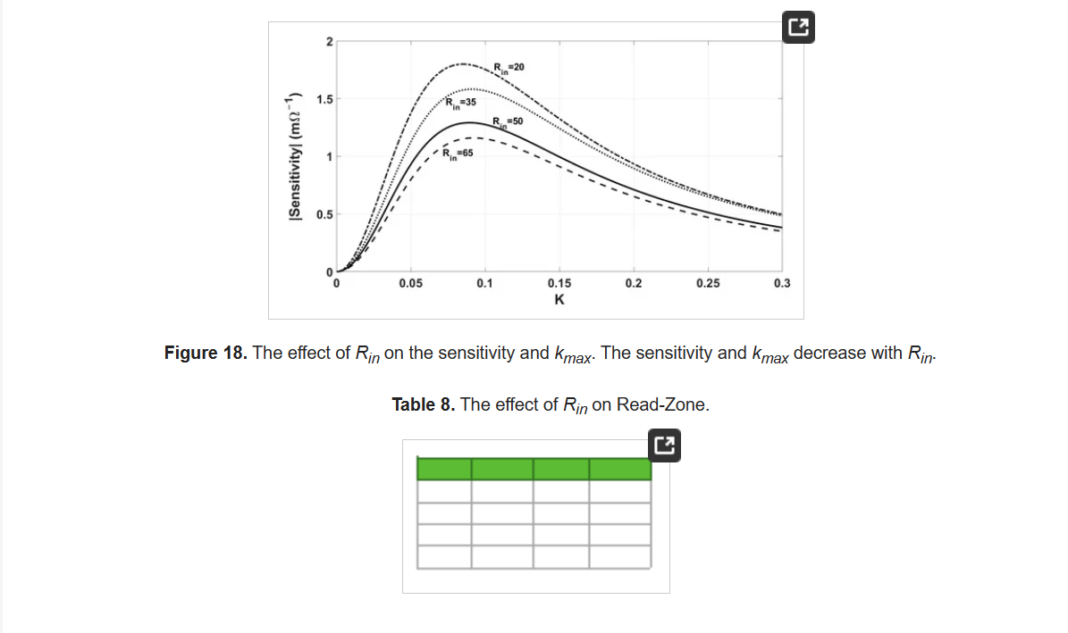 Figure 18. The effect of Rin on the sensitivity and kmax. The sensitivity and kmax decrease with Rin. Table 8. The effect of Rin on Read-Zon