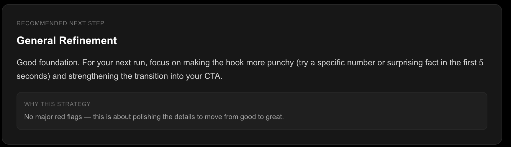 Fast, clear feedback matters as much as the analysis itself. Trust comes from consistent results and metrics users can understand.