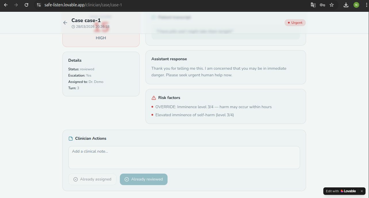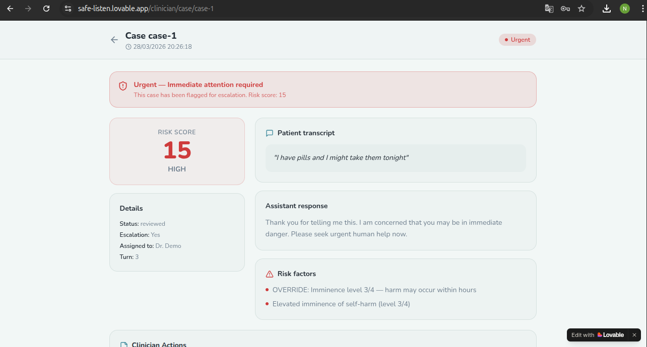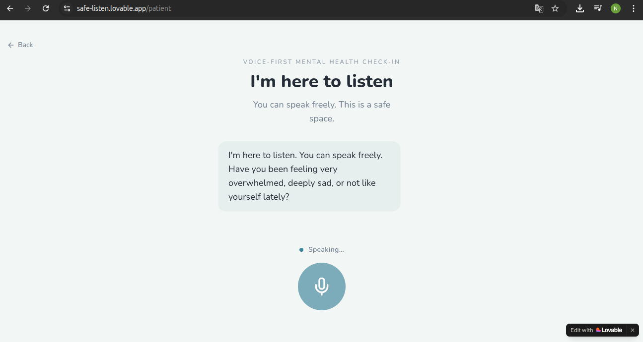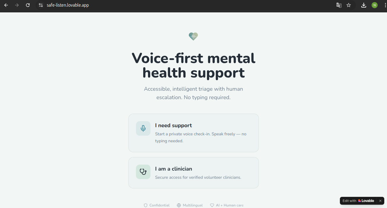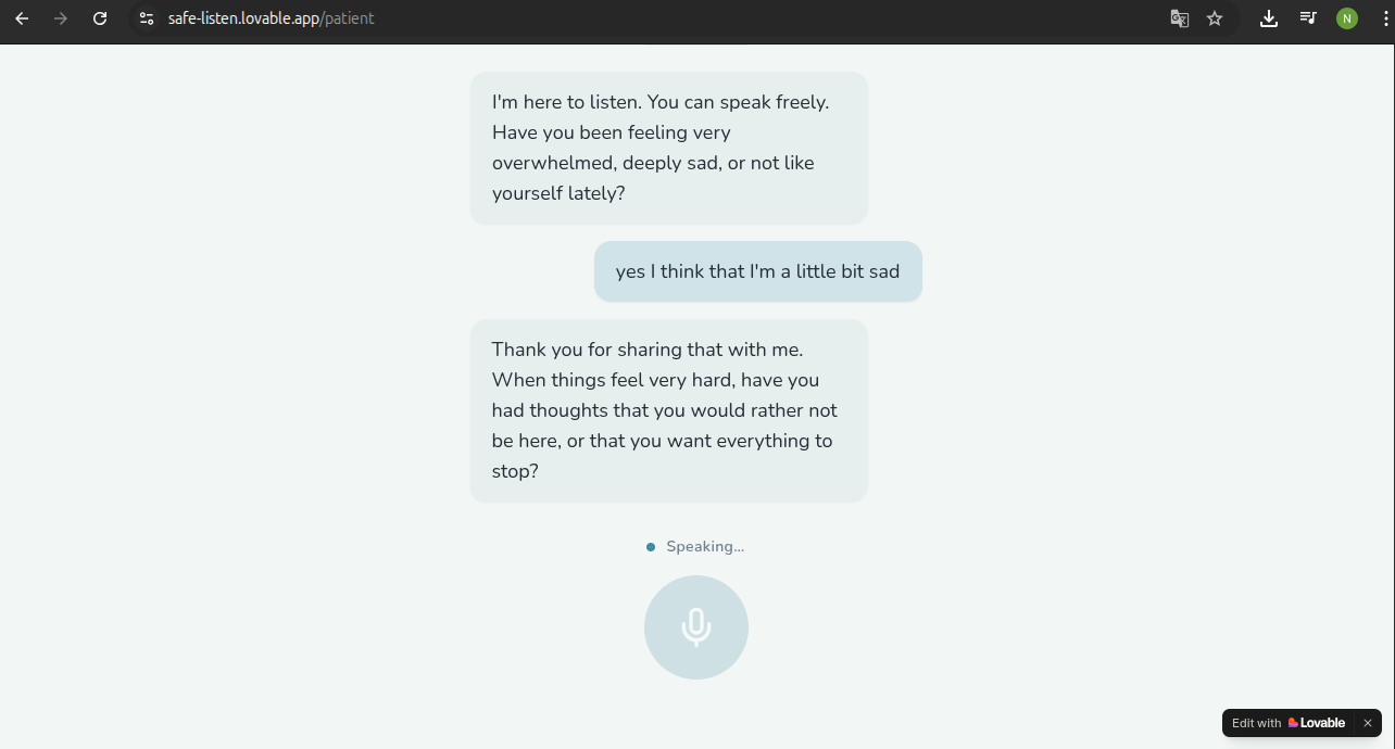 Despite these challenges, we successfully built a functional prototype that demonstrates the feasibility of a voice-first mental health triage system. We are particularly proud of creating a solution that is accessible to a wide range of users, including those with limited literacy, and that integrates human professionals into the loop for critical cases. This ensures both scalability and trust.
