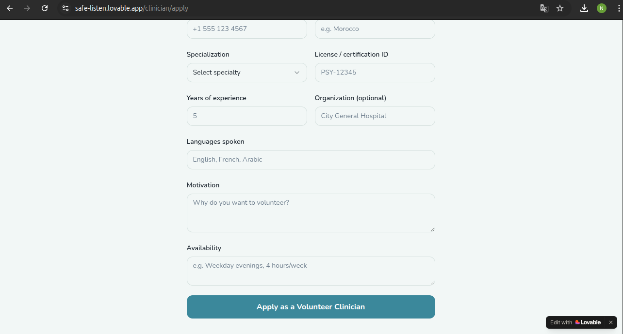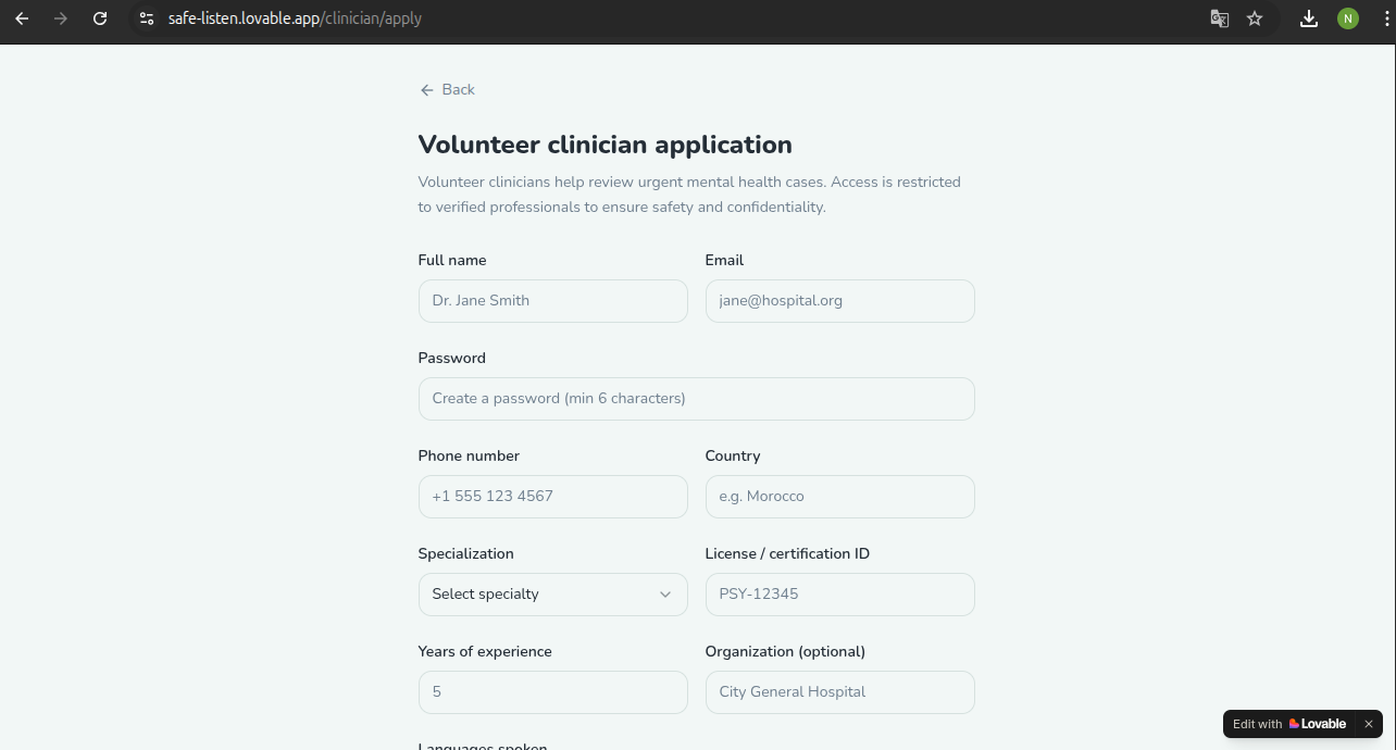 To address these challenges, we developed an AI-powered mental health platform designed to be accessible, inclusive, and easy to use. Our system is voice-first, allowing users to interact through natural speech in their own language, making it usable even for people with low literacy. The AI guides users through structured questions inspired by real clinical practices and analyzes emotional tone, speech patterns, and responses to assess potential symptoms and determine the level of risk. Importantly, the system is not designed to replace medical professionals but to act as a triage tool. For non-urgent cases, it provides personalized recommendations and guidance. For urgent situations, it escalates the case to volunteer psychologists or psychiatrists registered on the platform, who can review the situation and provide appropriate support.