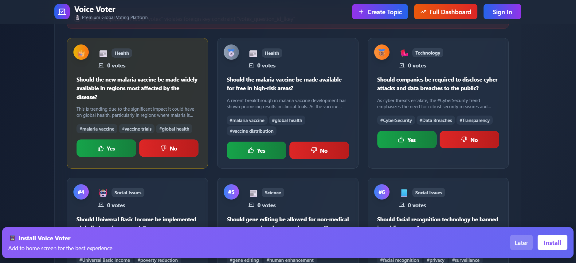 - Add category-based voting (tech, memes, politics, pop culture)