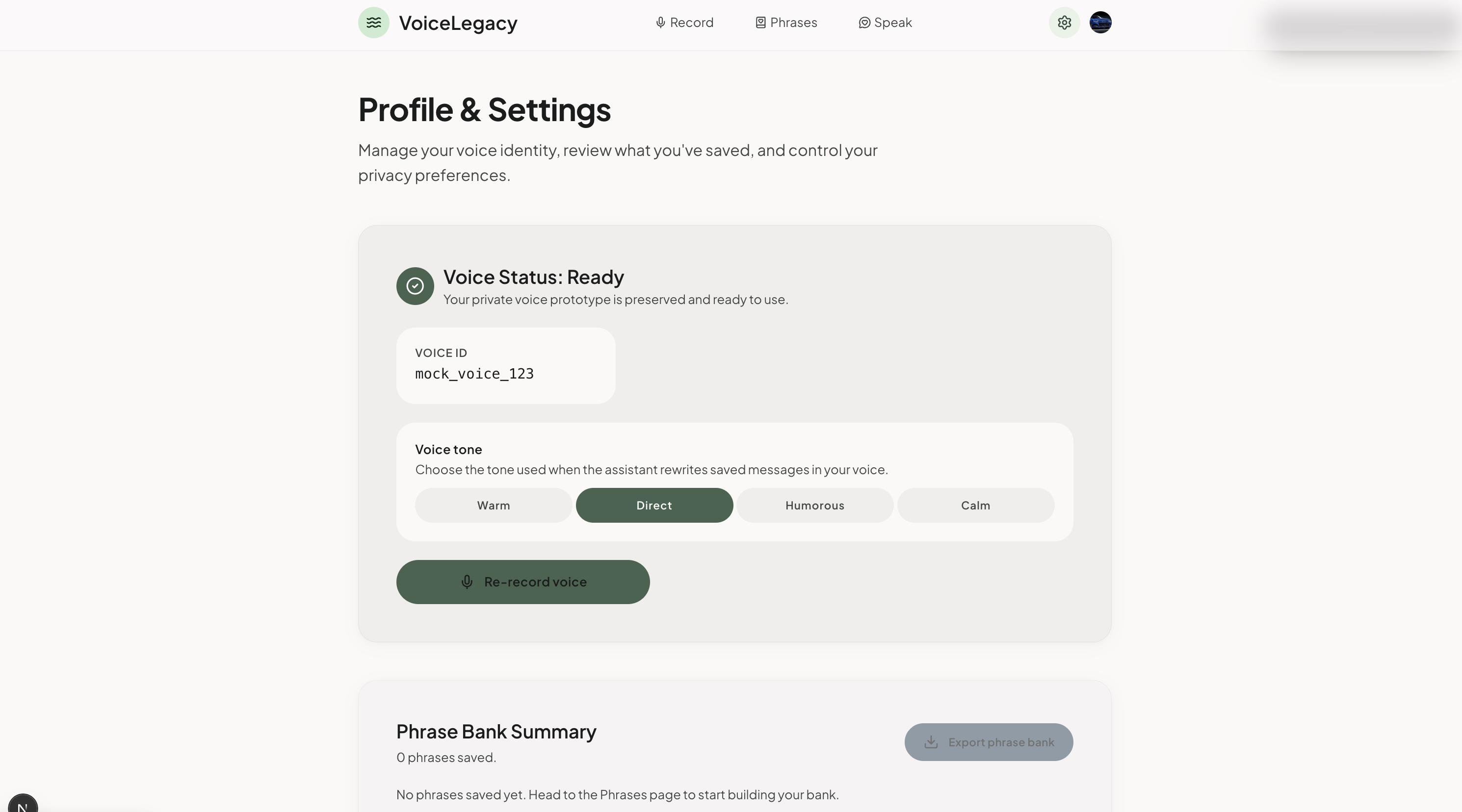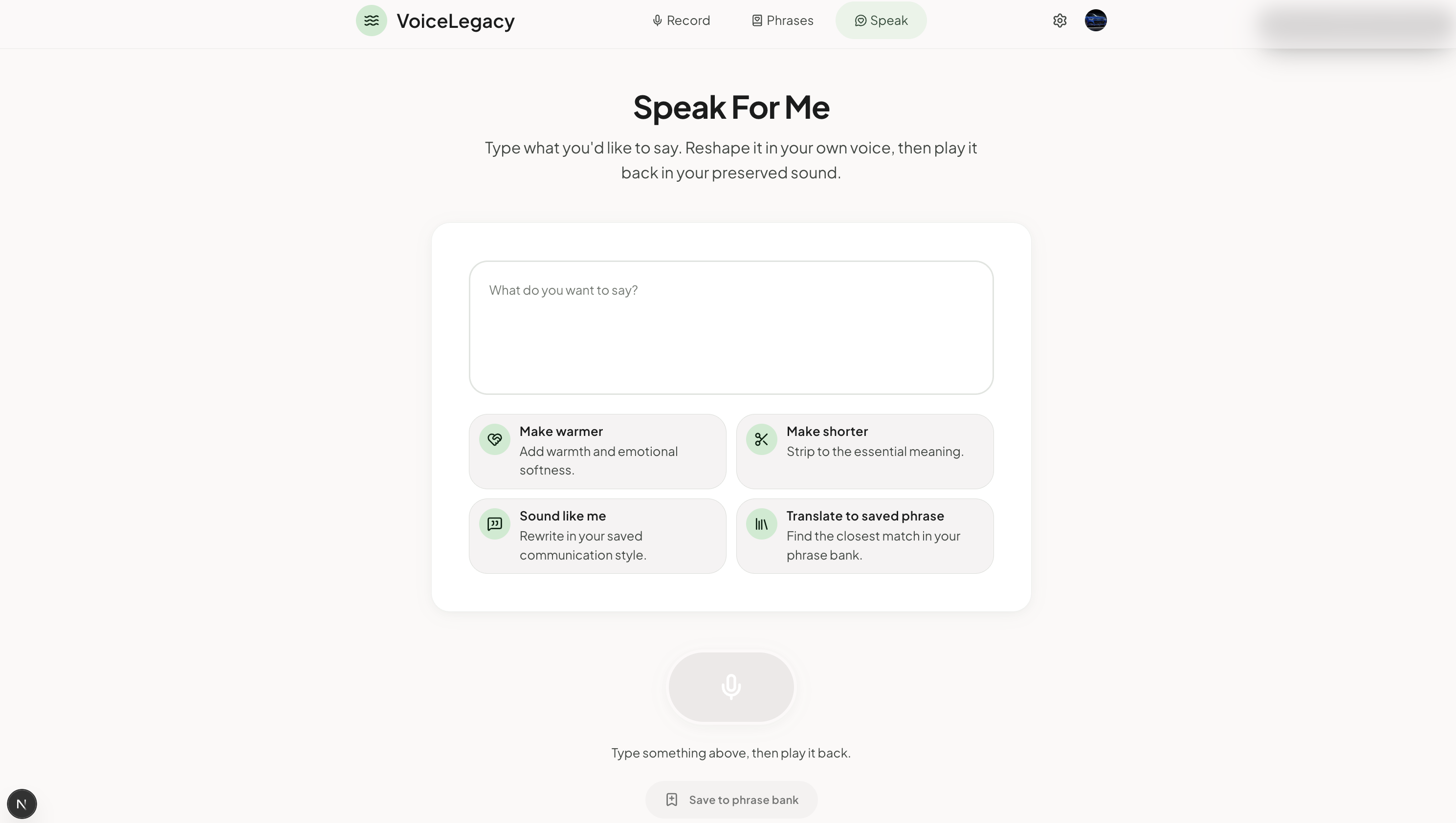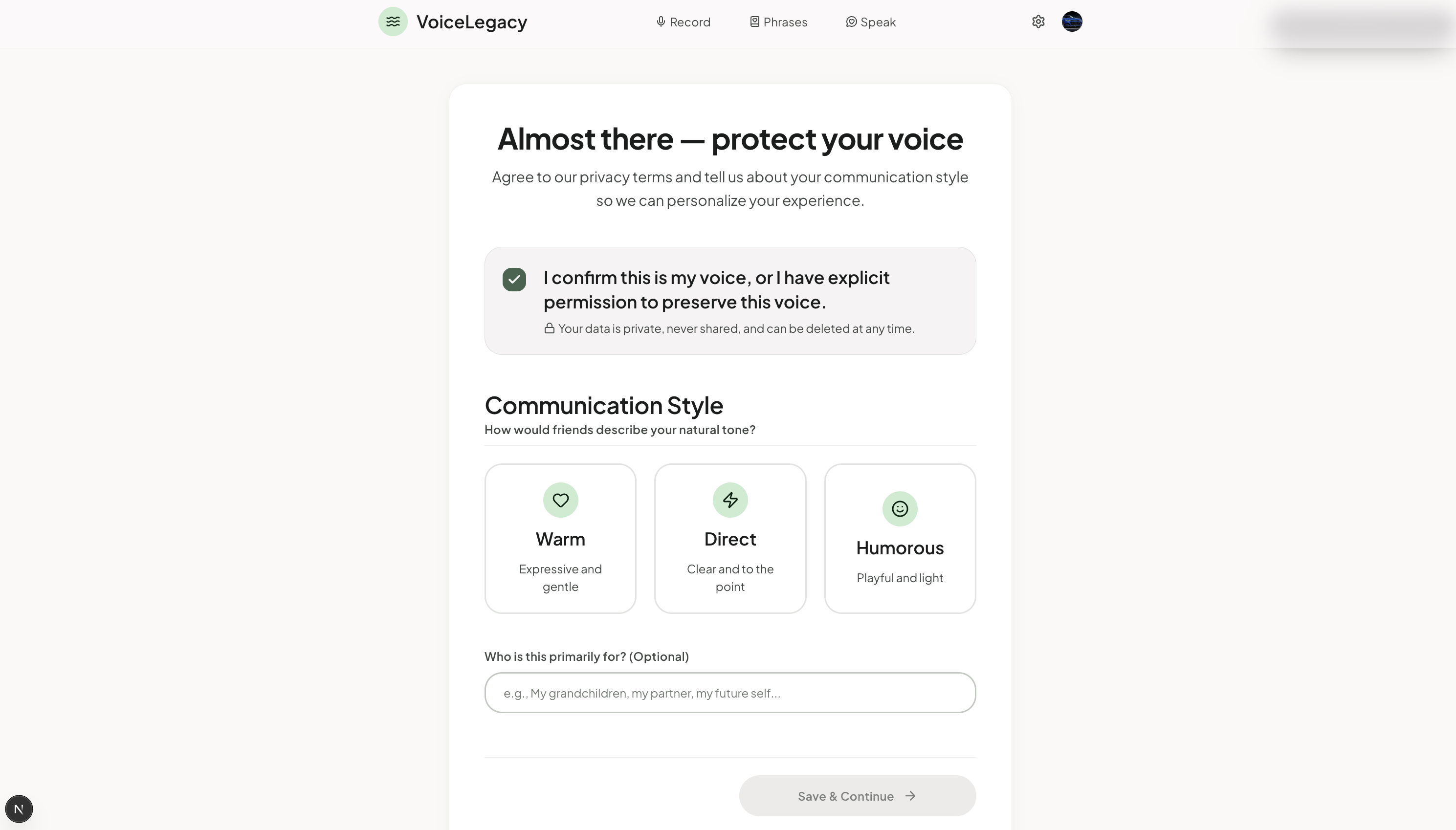 Every time we added a feature, we asked: does this make the product feel more personal, or more like software? The phrase bank got simpler. The recording flow got shorter. The consent screen got more human.