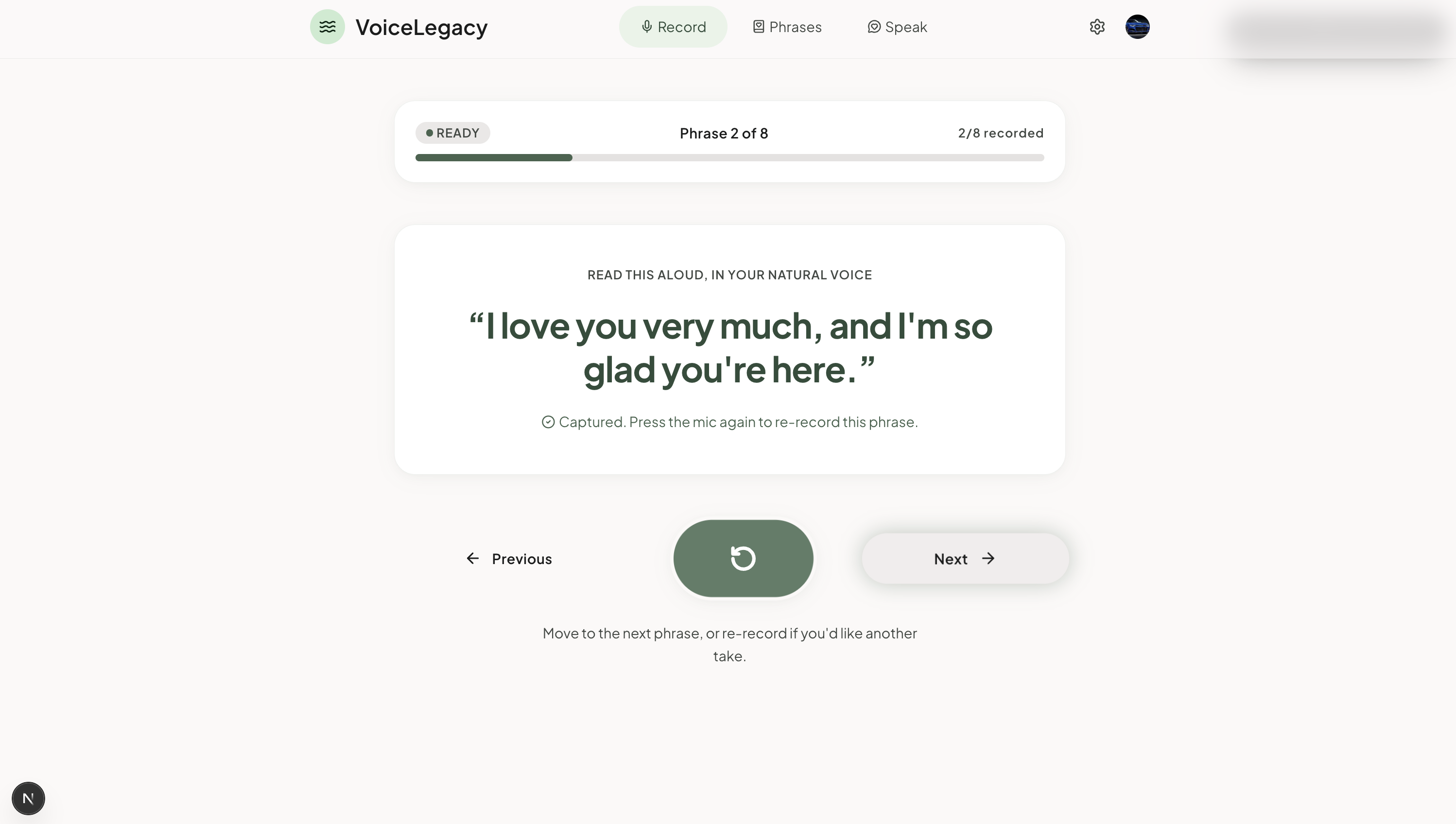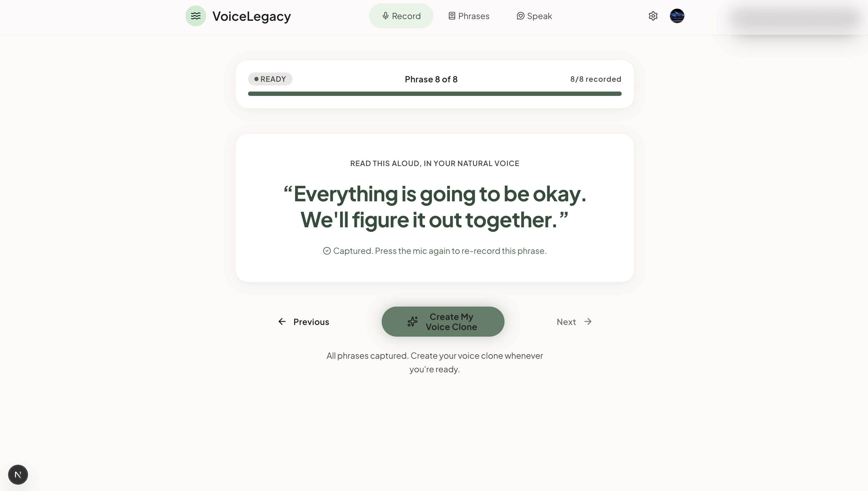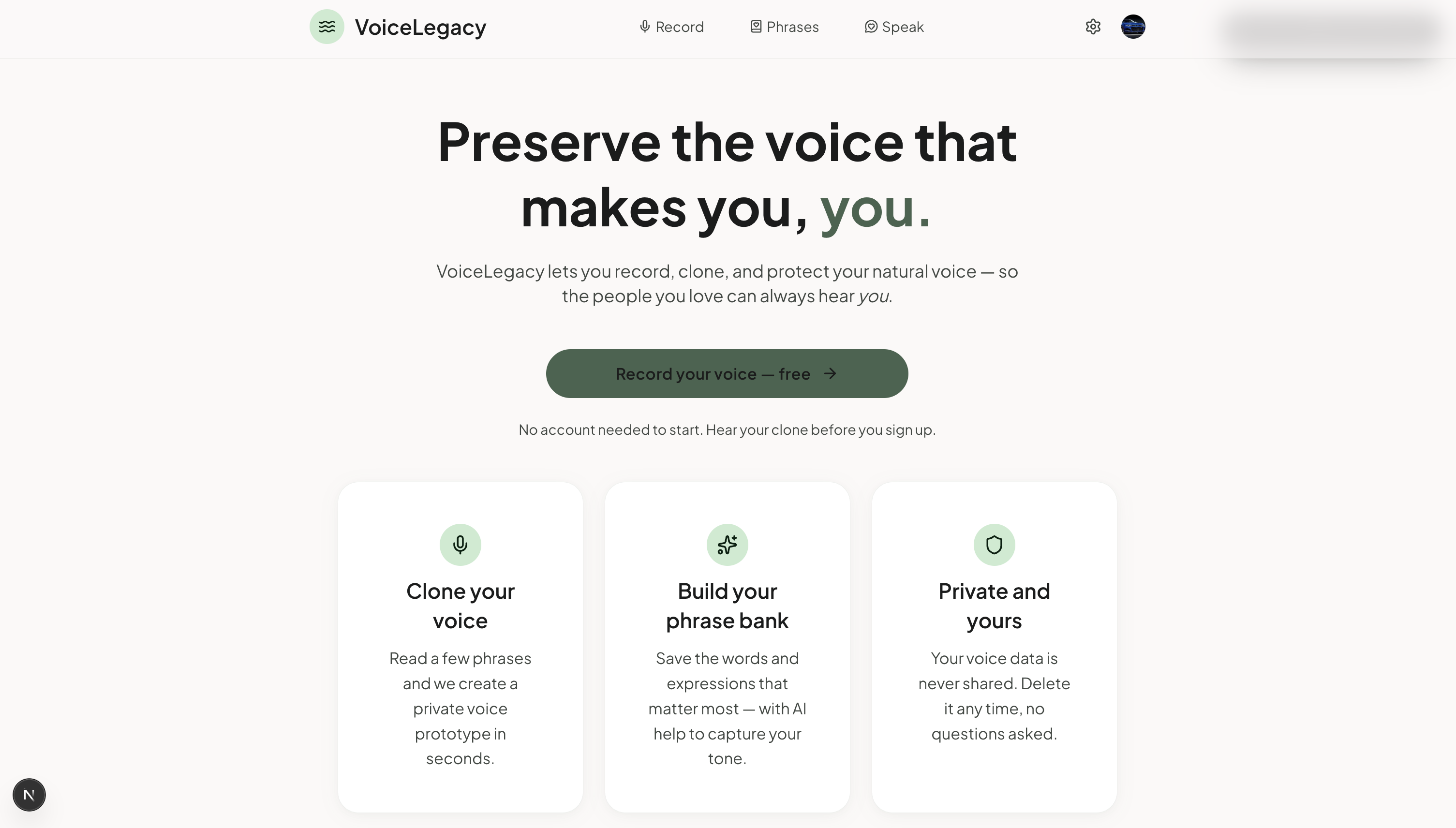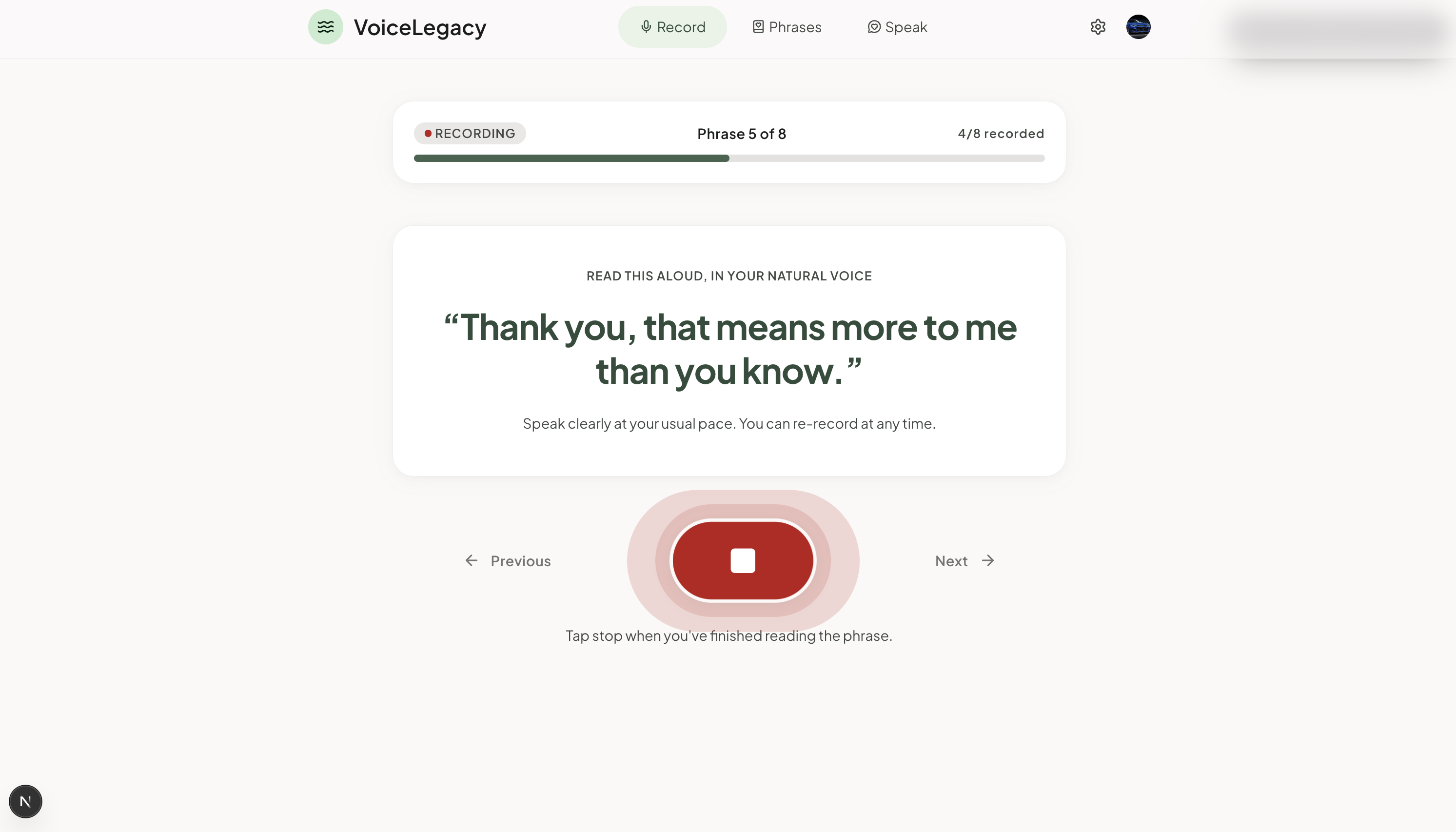 Every time we added a feature, we asked: does this make the product feel more personal, or more like software? The phrase bank got simpler. The recording flow got shorter. The consent screen got more human.
