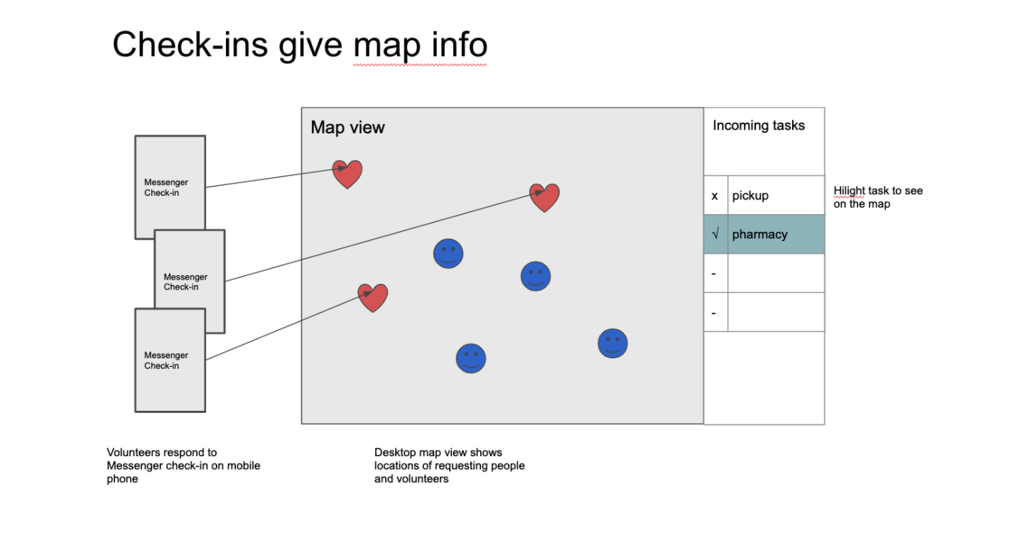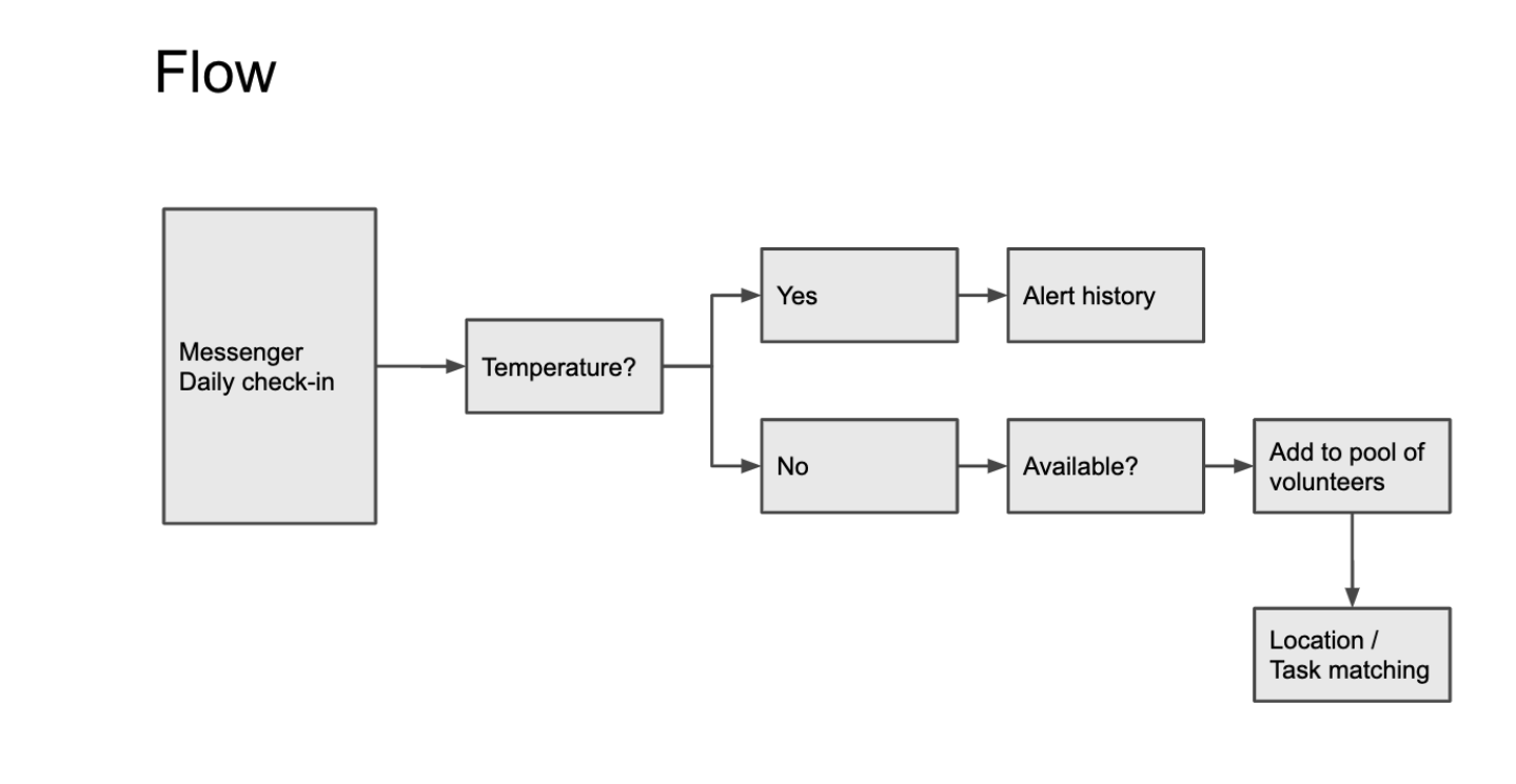 We propose a surveillance + work instruction for visiting and undertaking to volunteer. potentially with a Facebook app/widget in the form of a Facebook messenger chatbot which also posts your status regarding volunteering and health on profile (like relationship status)