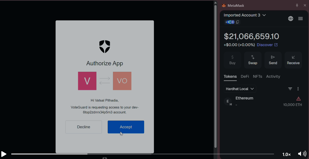 - Authorization → App requests access to voter's wallet address