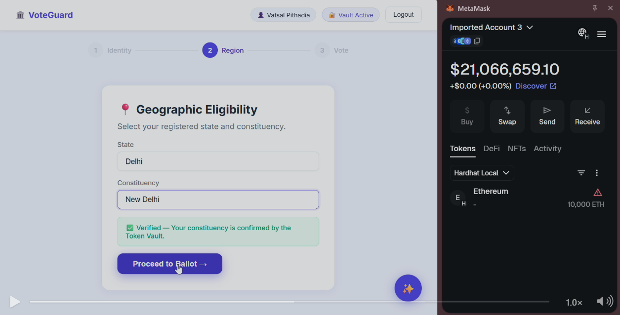 - Vault Confirmation → System verifies constituency against Token Vault records
