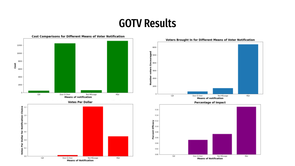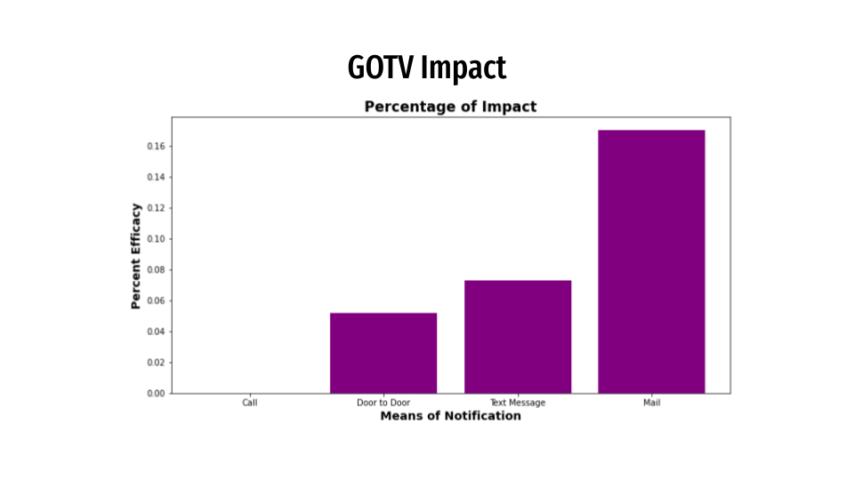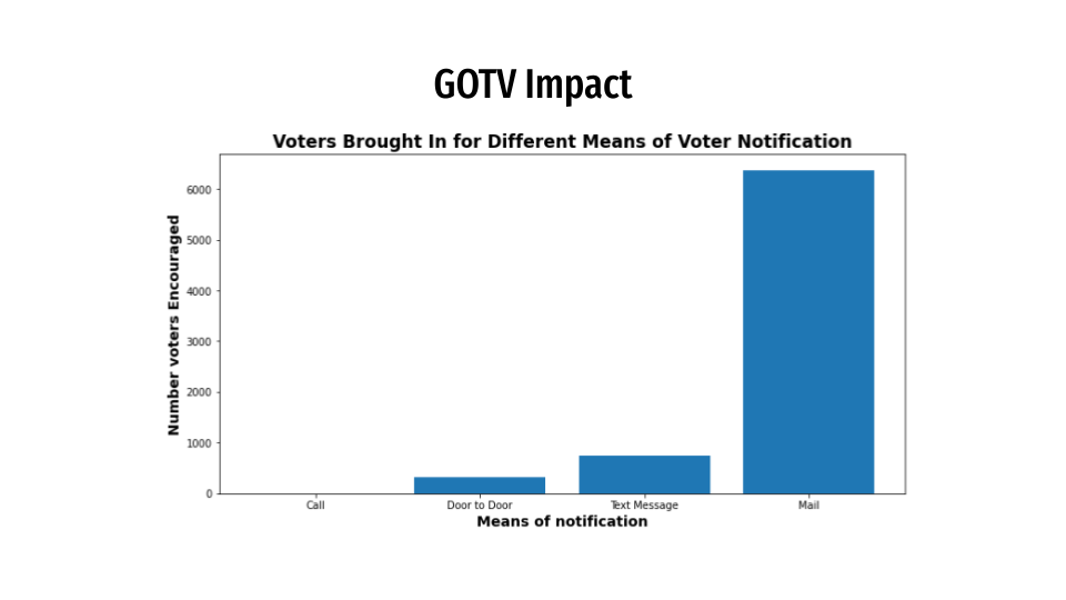 Our project analyzes voting data and finds inefficiencies and ways to increase efficiencies in the allocation of Get Out to Vote resources.