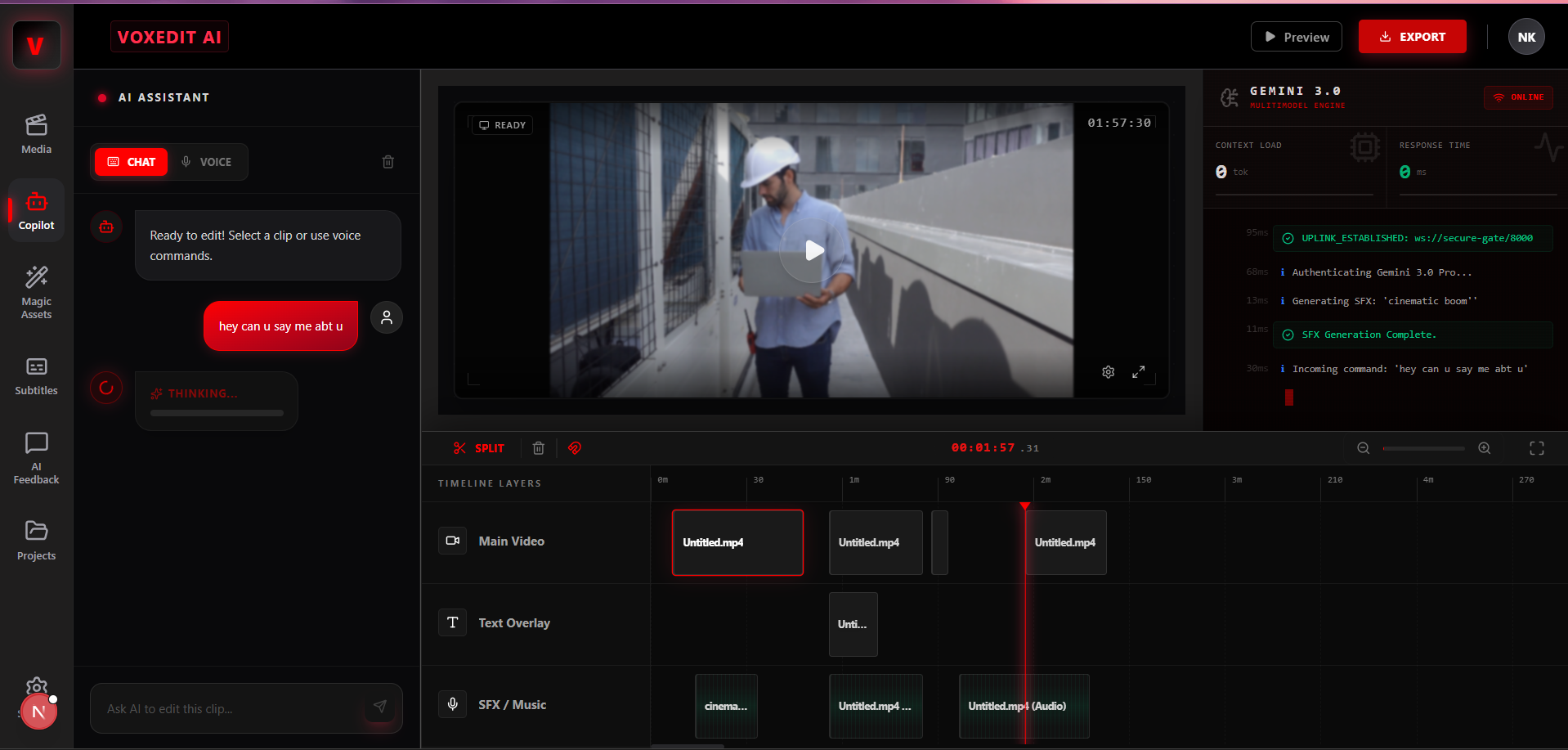 VoxEdit is a Gemini-3-powered multimodal video editing agent.