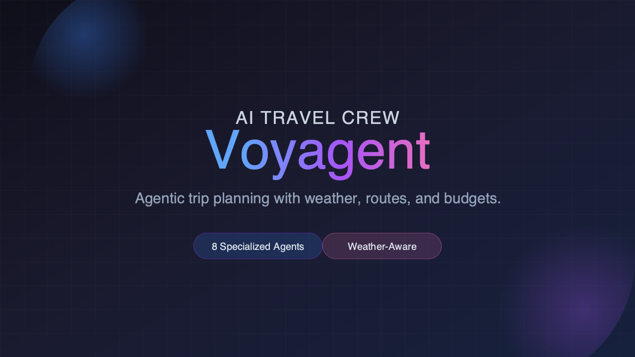 Voyagent is an agentic AI travel planner. Instead of one big model trying to do everything, we use 8 specialized AI agents that collaborate like a real planning team.