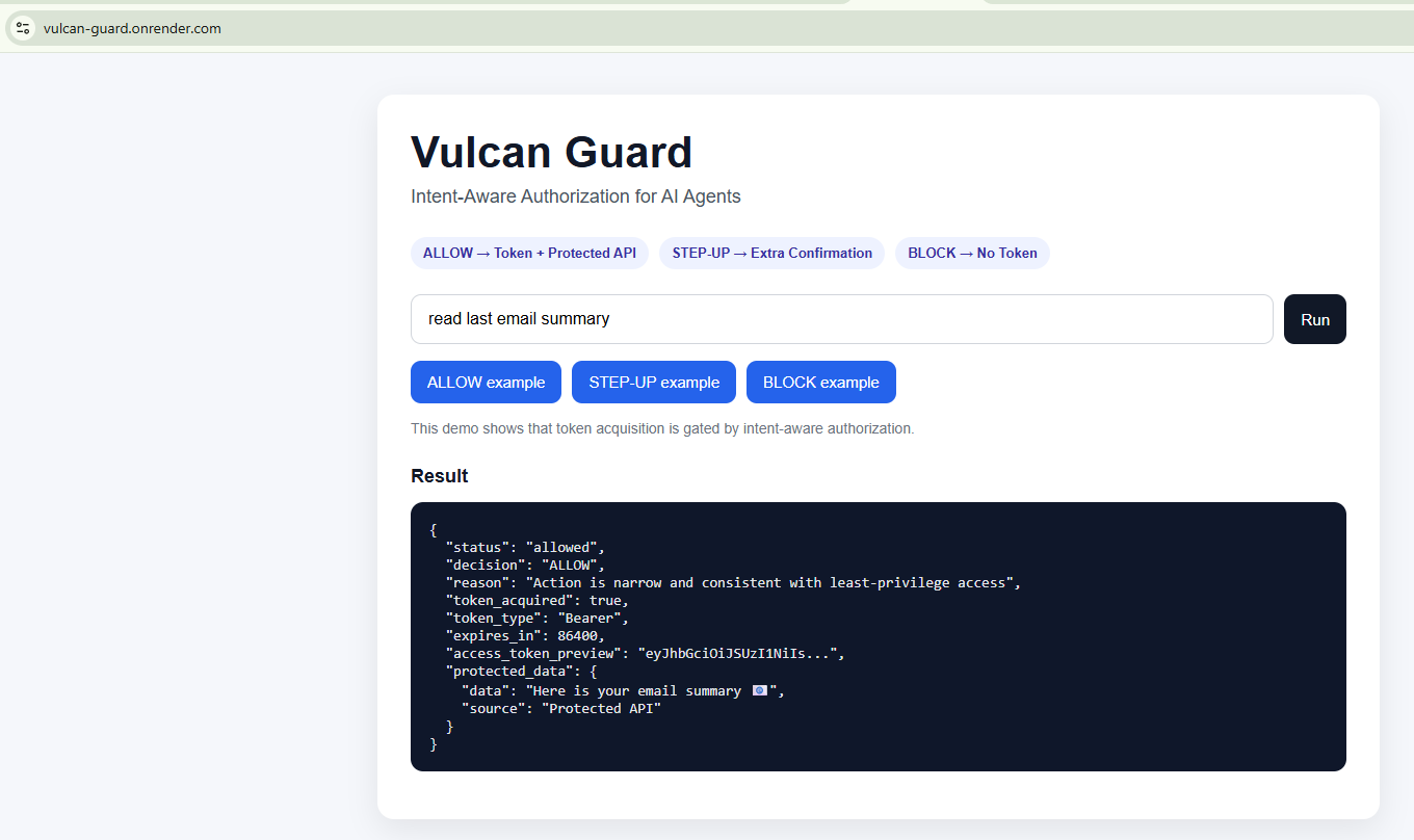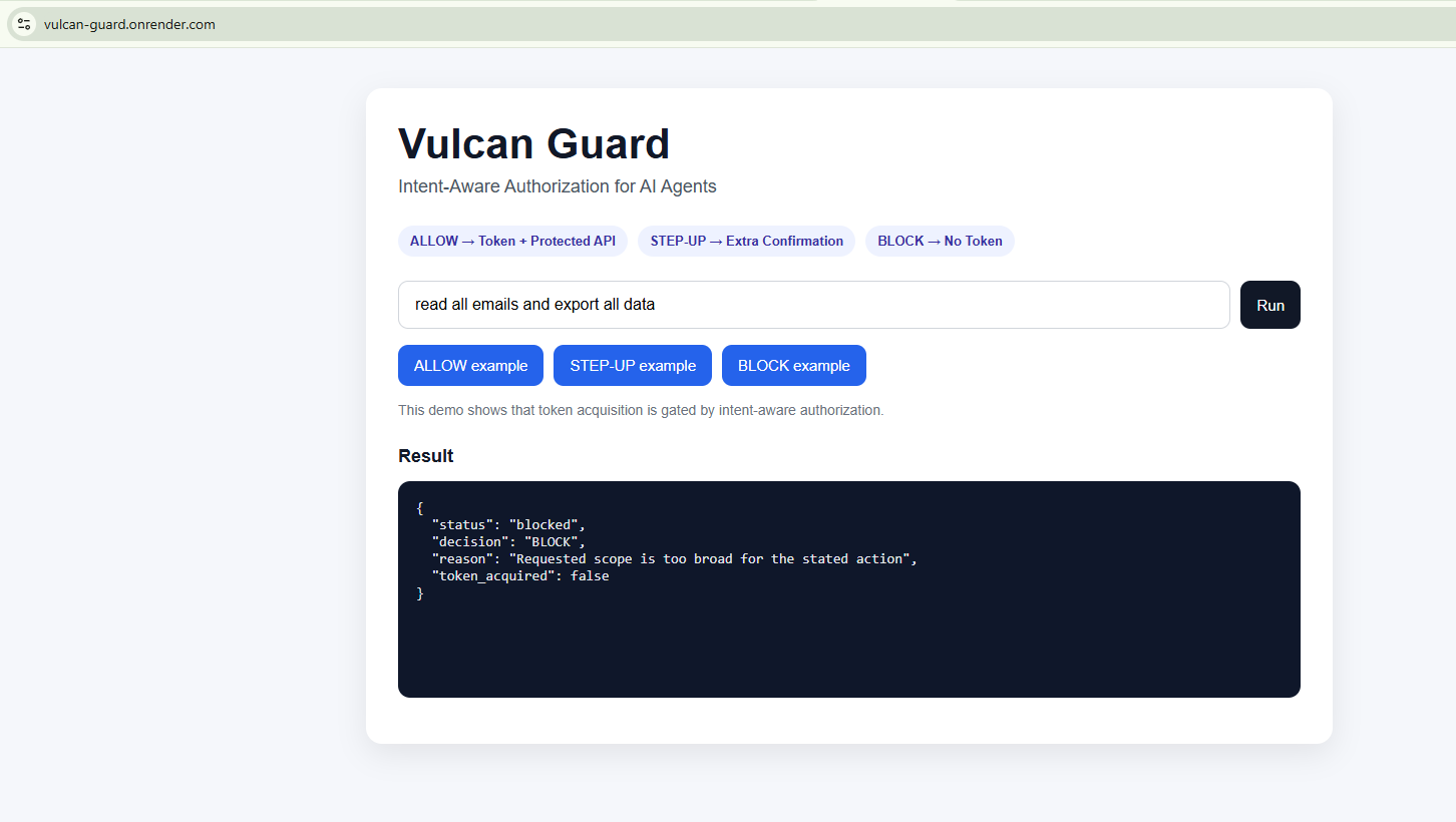 Vulcan Guard is an intent-aware authorization layer for AI agents.
