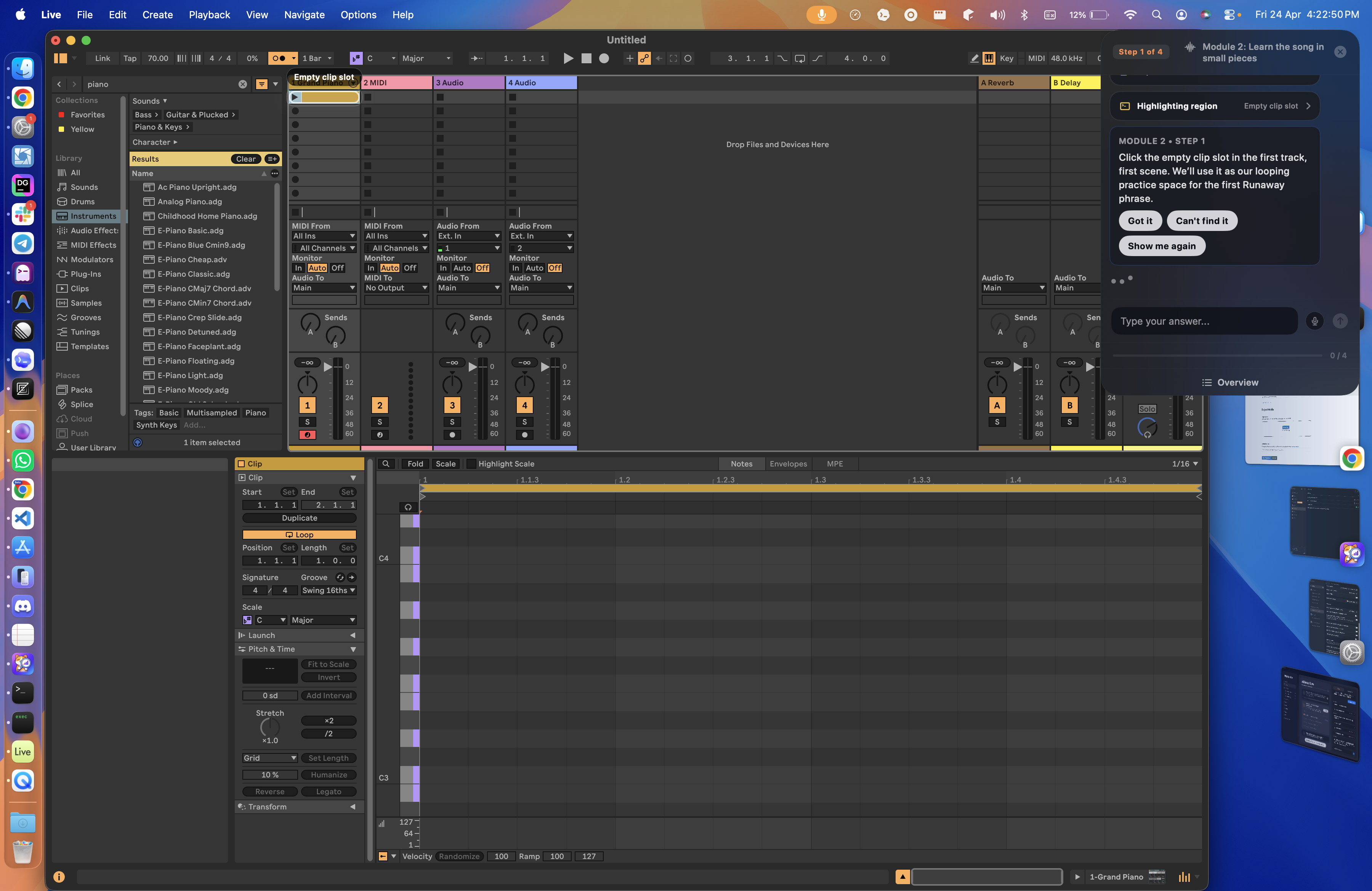 Walkable is a macOS learning agent for desktop software. A user says what they want to learn, like making a beat in Ableton, and Walkable creates an interactive course, inspects the live app UI, highlights where to click, answers questions, researches docs/web sources, and adapts the lesson as the user progresses.