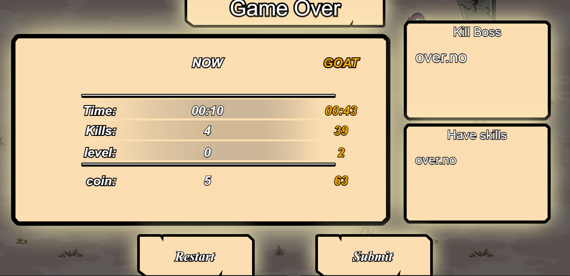 Accomplishments that we're proud of I completed most of the game logic within the time limit. I implemented specific algorithms to keep gamers immersed in the game, or at least give them a constant sense of tension and excitement. Successfully deployed the smart contract to the Somnia Testnet. The Somnia Testnet is very fast and the experience is great! I used the Somnia reactivity and the UEAFactory smart contract to implement a full-chain game leaderboard. It's incredible that I've actually achieved this!!! What we learned How to use game engines to realize your ideas How to write smart contracts using a hardhat How to deploy smart contracts to the Somnia Testnet What's next for onchainVampireSurvivors Design more interesting game UI. Improve the reward mechanism so that more top-ranked players can be reasonably allocated more rewards according to the algorithm, thereby increasing player enthusiasm. Currently weapons and character skins are pre-designed. I would like to introduce generative AI technology so that players can draw or generate assets such as weapons and character skins by themselves, which will greatly increase the randomness and fun of the game. Deploy it on Somnia Mainnet. Thank you for reading Thank you for your patience in reading this document. It is very long and took you a lot of time! Thank you very much! Of course, you are welcome to try my game! Feel the joy of roguelike game!