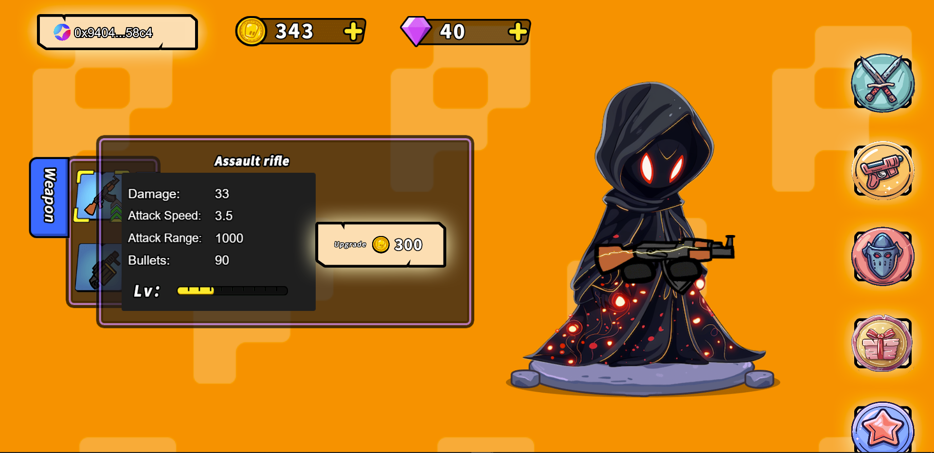 2.1 Weapon Page Players can select, purchase and upgrade weapons on this page. You can get gold coins by purchasing, drawing prizes and participating in games. You can only get diamonds and get cooler and more advanced weapons through lottery. (lottery is one of the easiest ways to get high-level weapons)