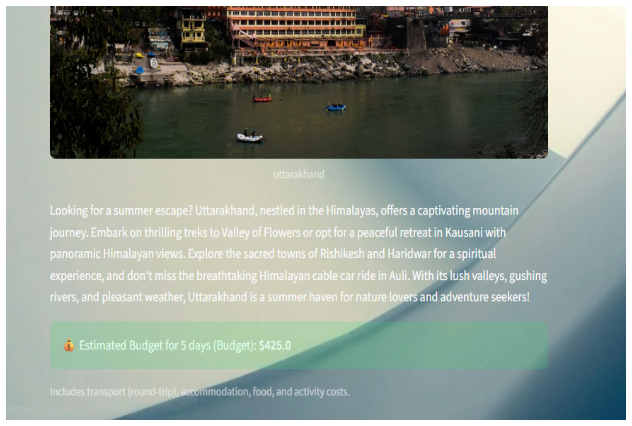 I’ve always been fascinated by the intersection of AI and travel. Planning a summer vacation can be overwhelming – deciding where to go, estimating the cost, and visualizing the destination. I wanted to build a tool that could make this process fun, smart, and simple. That’s how Wander Genie was born – your pocket travel planner powered by AI.