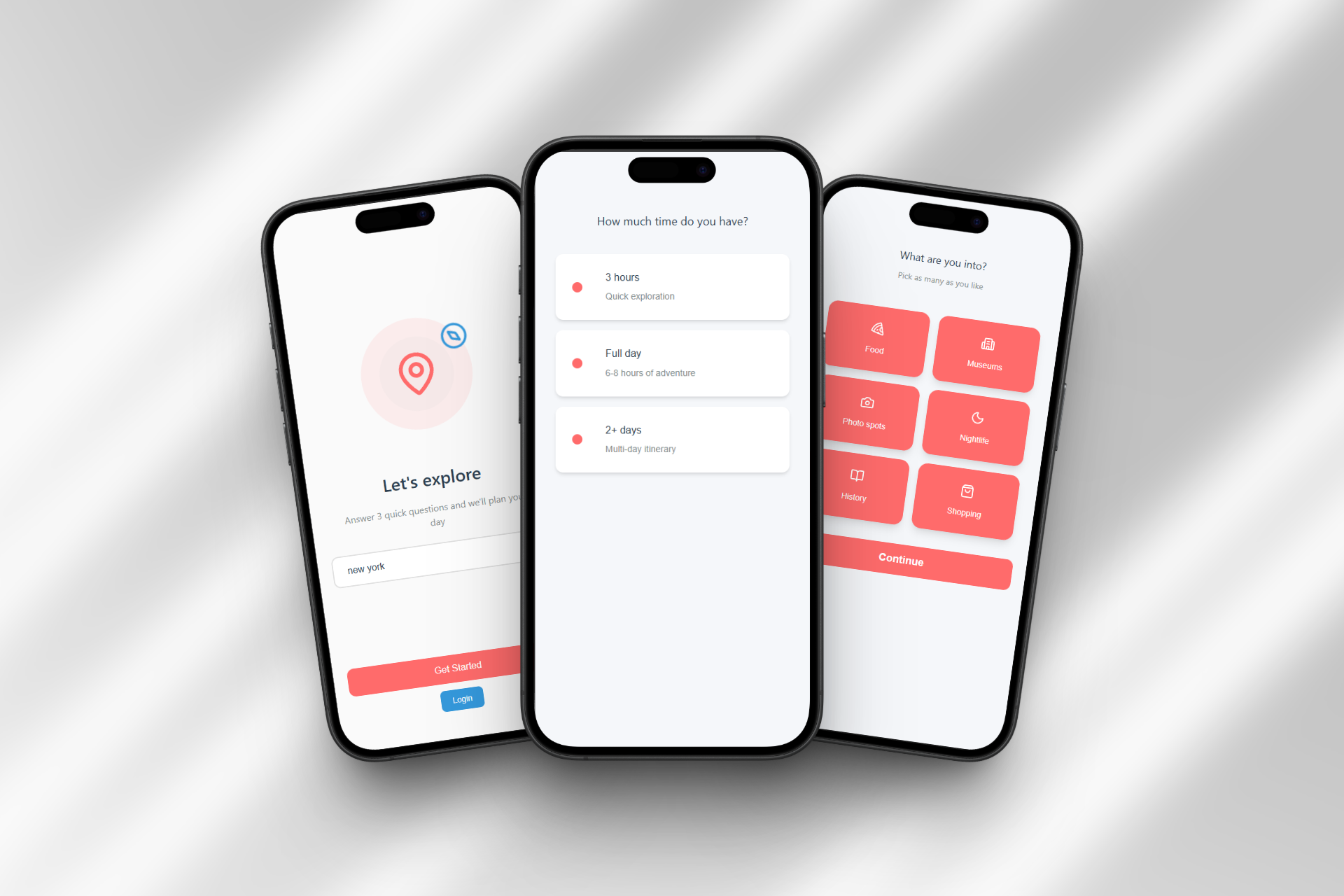 We needed something with fewer taps, visual clarity, instant Google Maps integration, and simple questions - especially when you're already at your destination trying to plan the next 3-6 hours. Or when your checkout is at 11am but your flight is at 11pm and you need to plan those 12 hours fast.