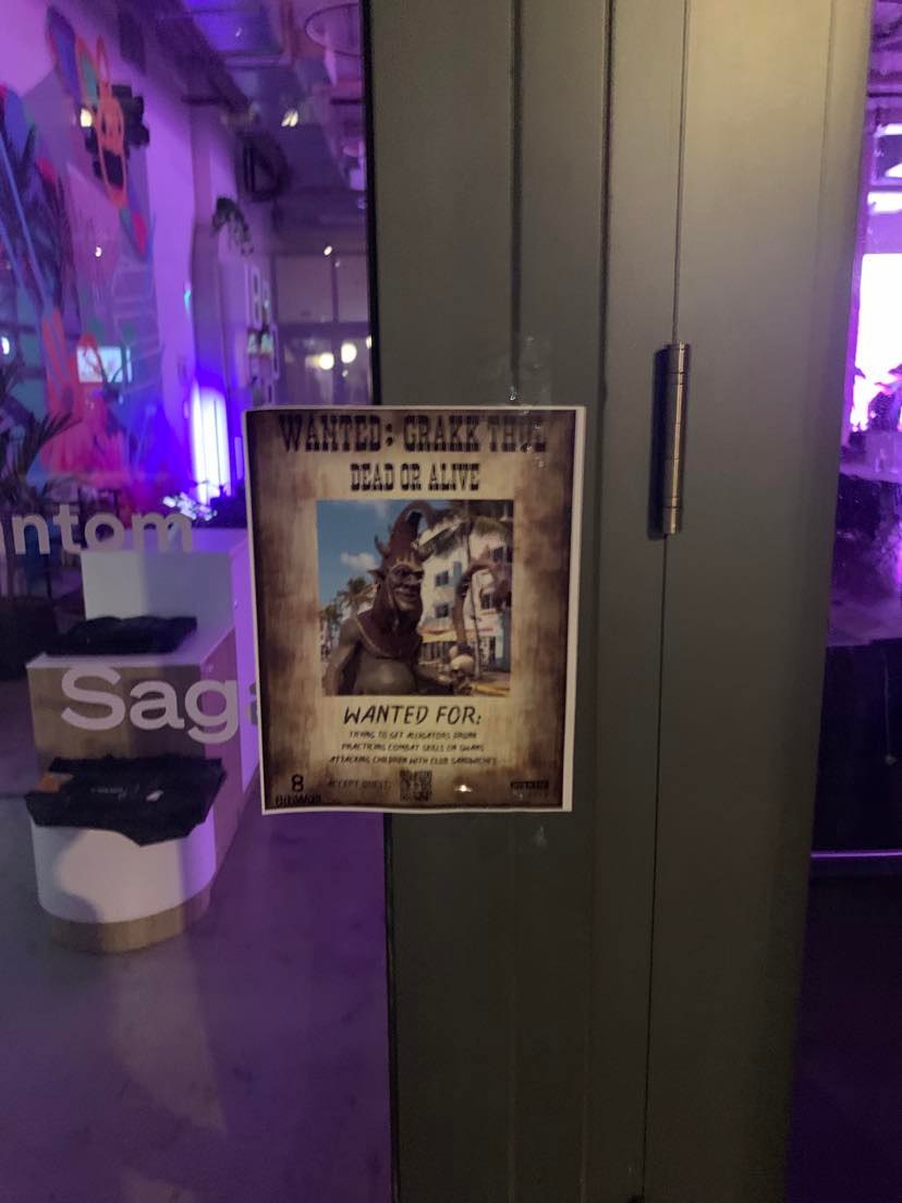 When players find a WANTED: GRAKK'THUL poster, they can scan a QR code to be instantly thrown into battle against Grakk'thul, a goblin who has escaped from his reality into ours and is rampaging across Miami.