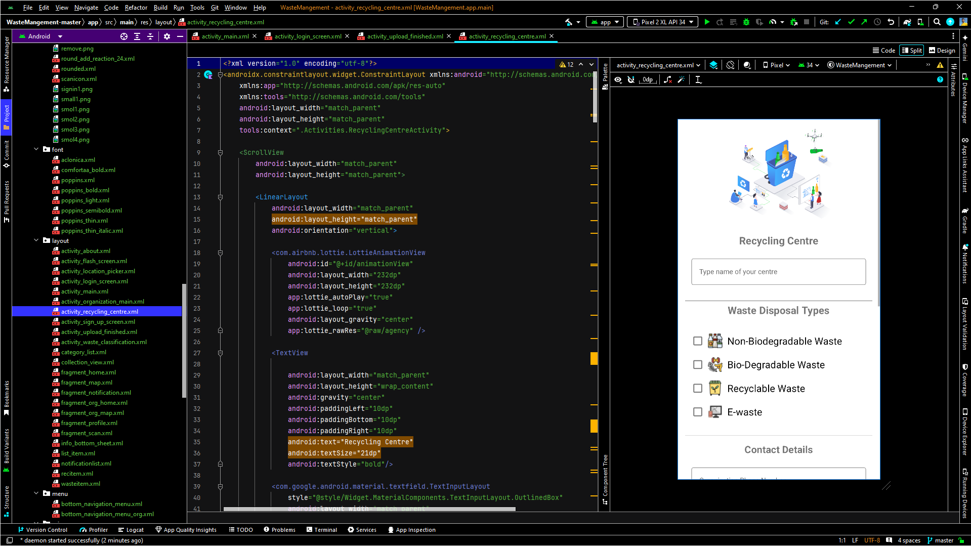 We built the Smart Waste app using Kotlin for Android development. The backend is powered by Firebase, providing real-time database capabilities and authentication services. We utilized Google Maps API for location-based features and integrated machine learning algorithms to optimize waste collection routes.