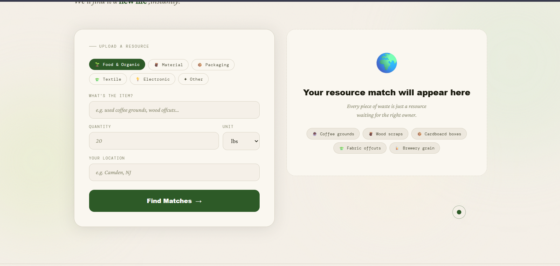 - Browse a live feed of available waste for reuse in their area (coming soon!)