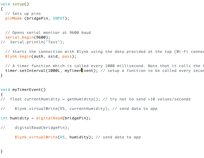 This program is designed to measure the humidity at a specific distance from a boiling pot of water in order to determine when the water begins to boil. When the pot is boiling, that information will become available on the user's mobile device. Additionally, a fan positioned near the pot will begin to spin. This is to help cool down the surface of the water, ensuring that the water does not boil over the sides of the pot.