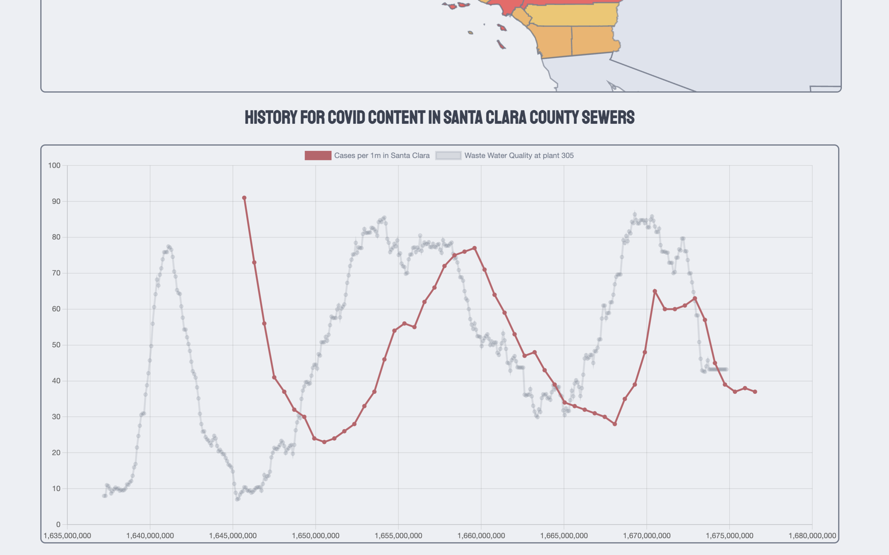 We were most surprised to learn that COVID-19 can be detected from wastewater. We also learned a lot about working with github, as this what we used to create and code our project. Some other new skills we gained include flask, hosting servers, and DeckGL.