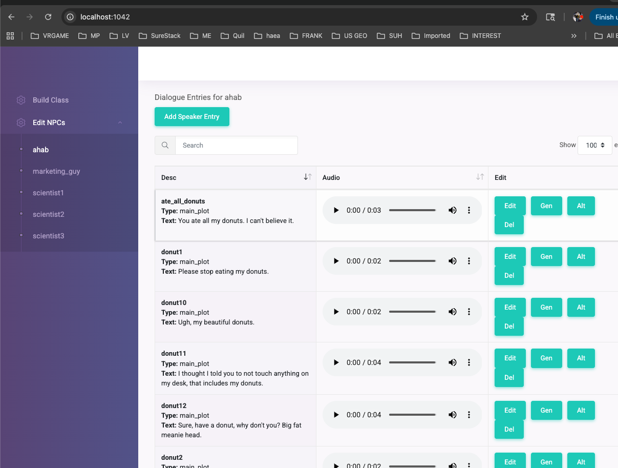 Custom dialogue builder which can record in a browser and gen visemes and exports dialogue classes and mp3s for ease of use in code