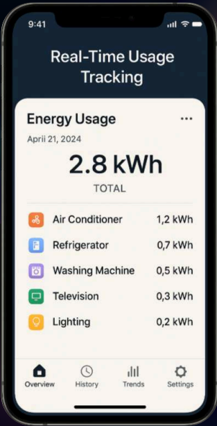 Challenges I ran into Accurate per-appliance simulation and creating a smooth real-time experience were my biggest hurdles. Balancing design simplicity with technical complexity also took careful effort.