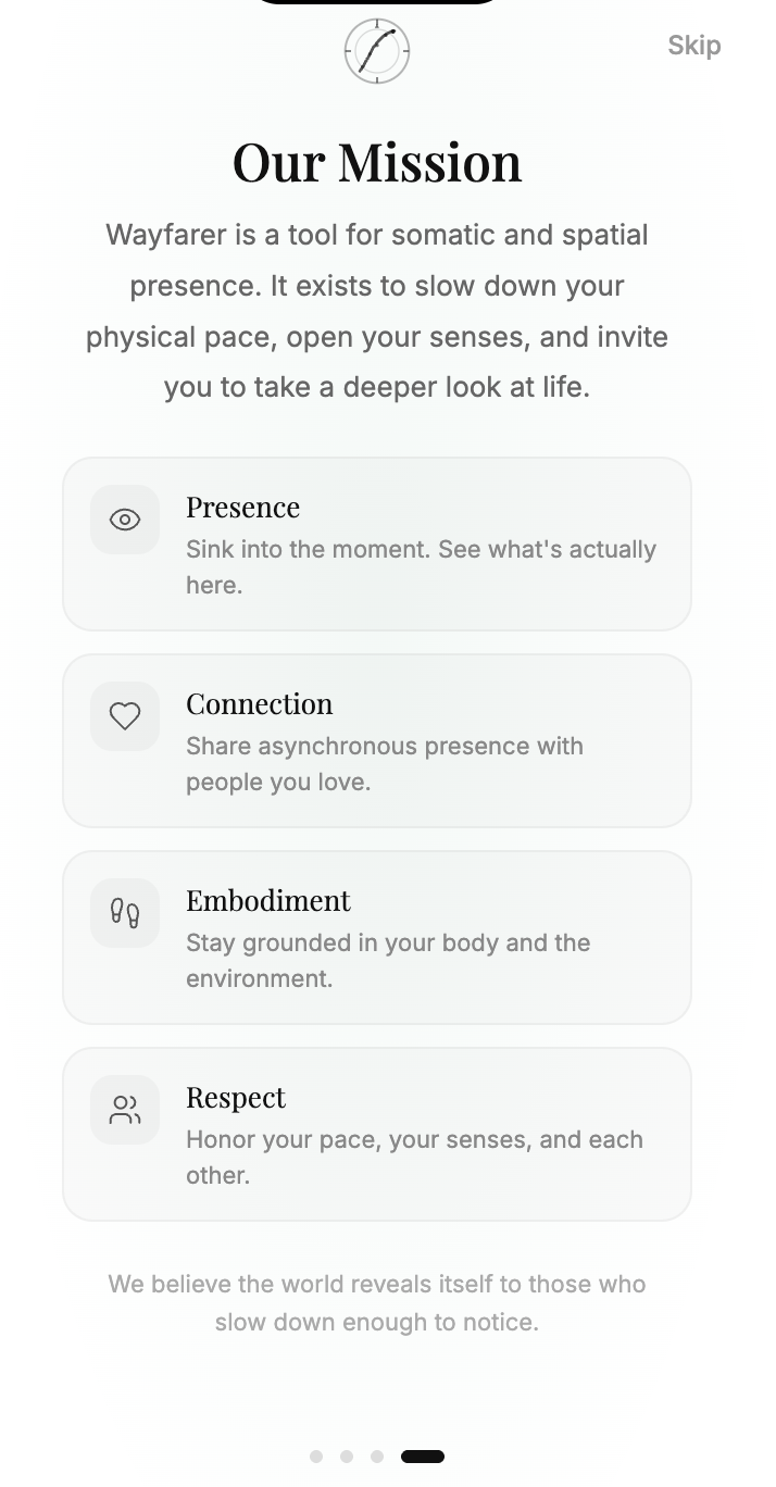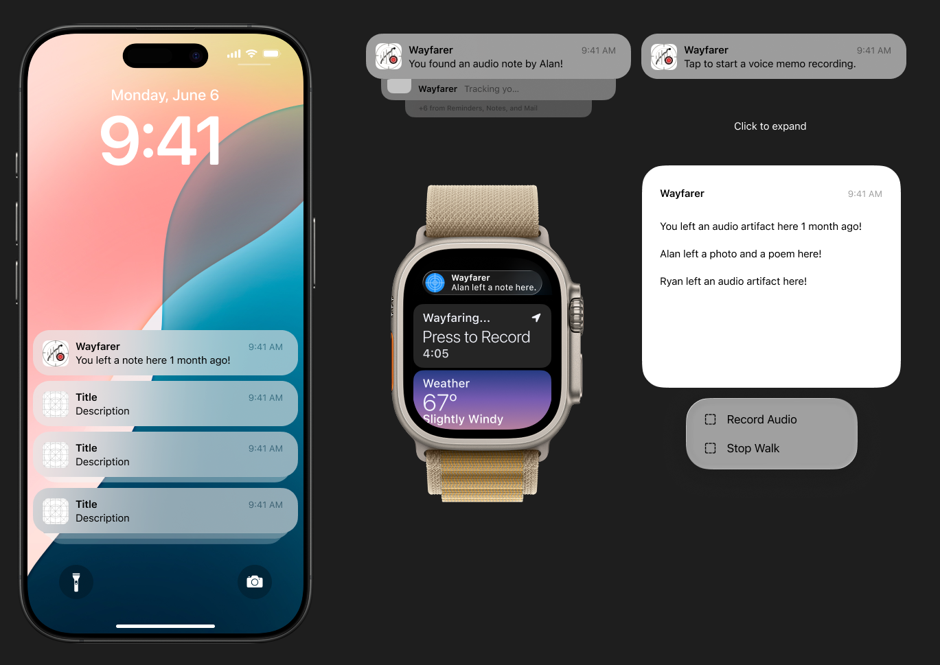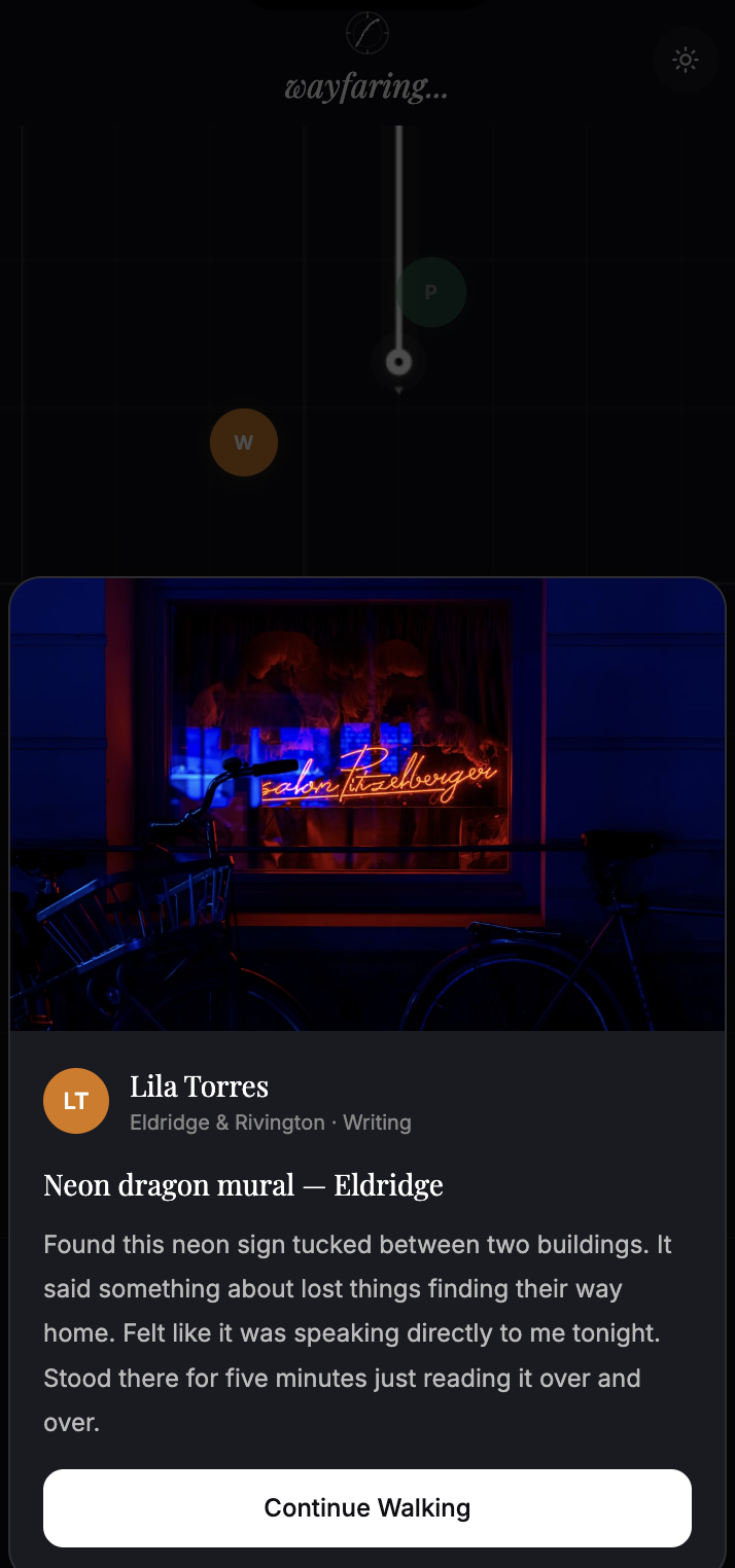 So this project is a good mix between walking and journaling. You can open this app to track your walks, see your history, and attach a memory to a physical place. It connects the kind of intangible, ethereal concept of memory and experience, and notes it down at a place in time and space. It also allows you to see what others have created and shared in this physical/digital connector.