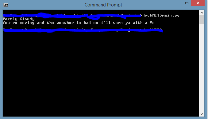 Basically the app is a script that checks if I've been moving around a bit (ie about to walk out of a school building after class), and checks the weather. Theoretically, if it's raining, it should send a Yo to my phone and let me know I should probably have an umbrella on hand!