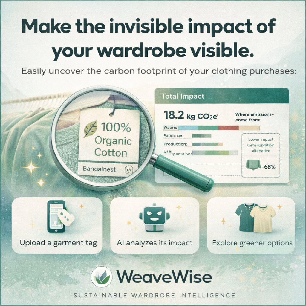 That idea led us to build WeaveWise, a tool that starts with something almost everyone already has access to: a clothing tag. By turning a garment label into a readable impact report, we wanted to give people a practical starting point for climate action through everyday decisions.