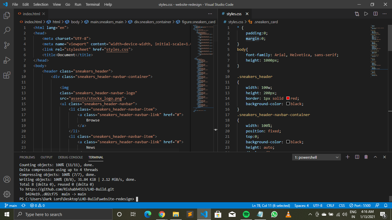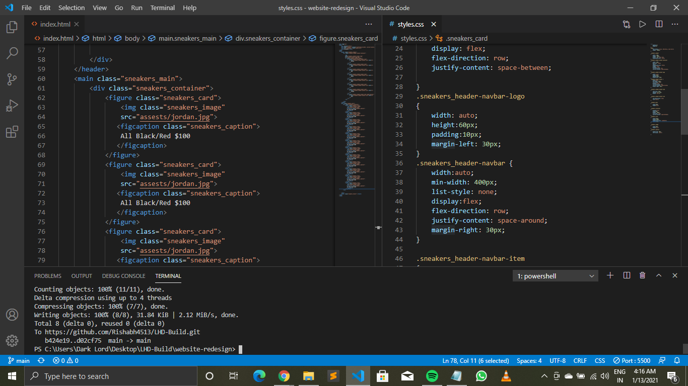 Using HTML, CSS and git in vs-code ide.