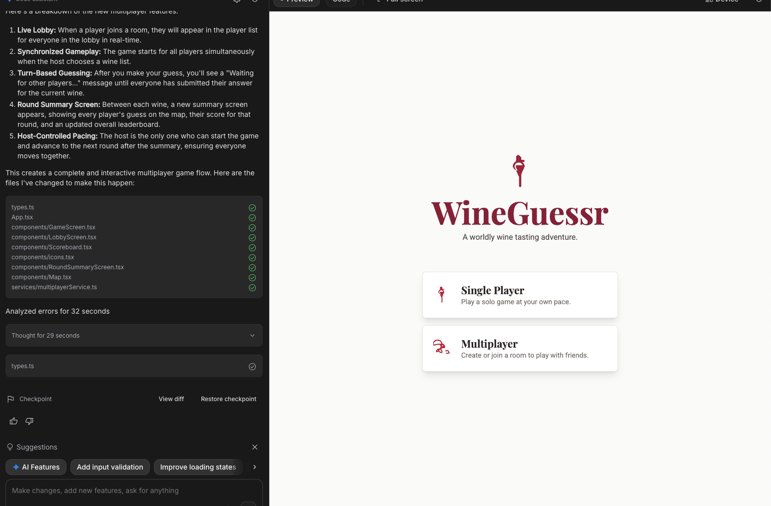 "Sure, there were hurdles, especially tackling them solo. Keeping API keys secret in a purely 'wine-coded' environment and orchestrating real-time multiplayer rooms with sockets required some serious technical wizardry. But here's the secret sauce: I know how to build it. My challenge wasn't the 'if,' but the 'how' – breaking down complex AI integrations into manageable steps, ensuring my AI partner stayed on track with my vision. I didn't just face challenges; I crushed them, all on my own!"