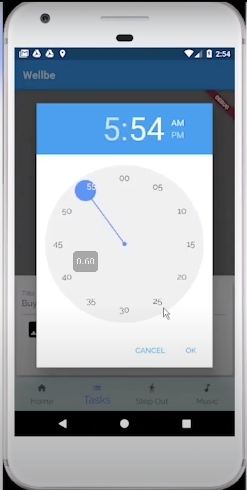 Let's first take a look at the caretaker’s user interface On the home page, we have information about the patient's whereabouts, the pulse data, and the battery status of the designed band. The pulse is constantly updated enabling the caretaker to keep track of the highs and lows and be alert about the onset of an anxiety attack. When we click on step out, the caretaker can set the boundary to the home and the neighborhood - the geofence. We also tried to incorporate the findings of the reminiscence theory which has been proven powerful by various studies. Nostalgia in the form of music can calm the person down and bring back the memory of a long lost song. The caretaker can set a task from our predefined list of tasks or can even upload a picture of their own and set customizable tasks. For example, instead of the caretaker saying “Take your medicines”, they can actually take a picture of the particular medicine box and upload it, for the patient to not get confused. This will be directly communicated to the patient’s app. We also have big colored buttons for calling the caretaker directly, without going through the pain of searching for the number in the contacts, A “go out” button for stepping out with the knowledge of the caretaker and refreshment for playing audio or music.