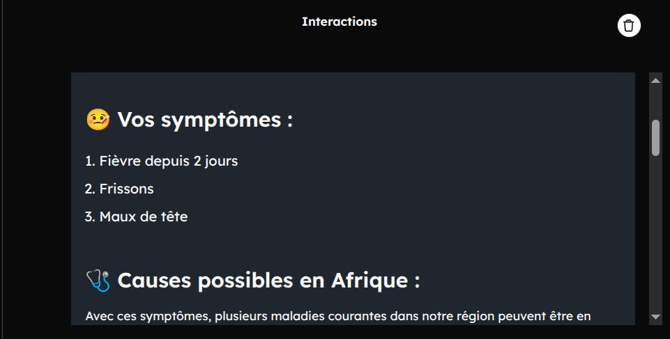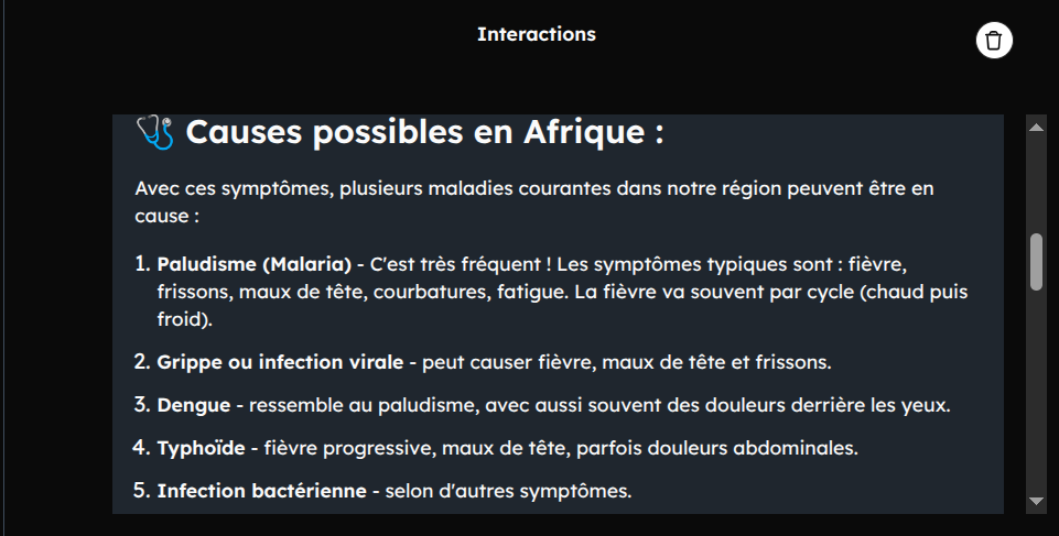 - Symptom identification for common African diseases (malaria, cholera, dengue, typhoid, malnutrition)