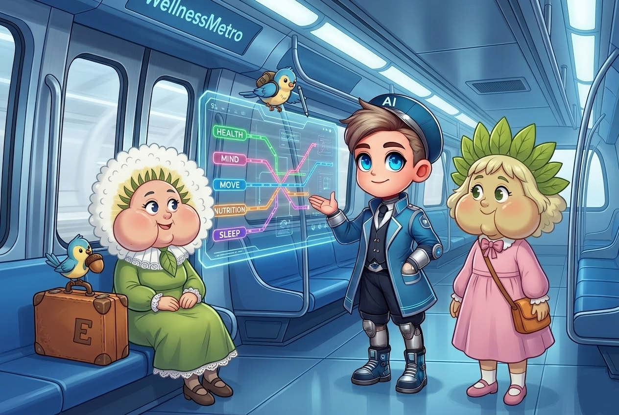 WellnessMetro: the fastest route to health, bypassing digital noise and info-traffic with AI-guides Metronic & Welly.