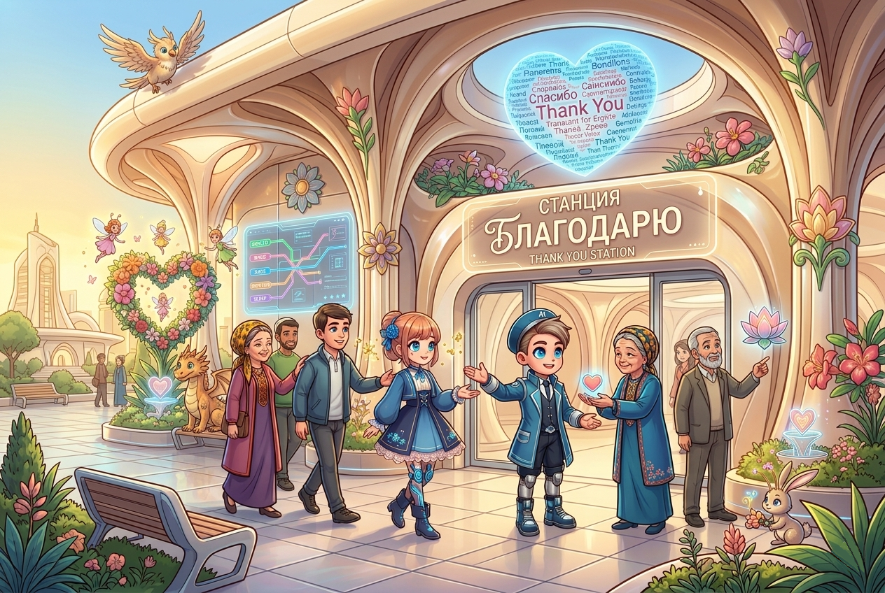 Gratitude in Action: Arriving at the station where 'giving' meets 'receiving'—a vibrant hub of intergenerational energy exchange.