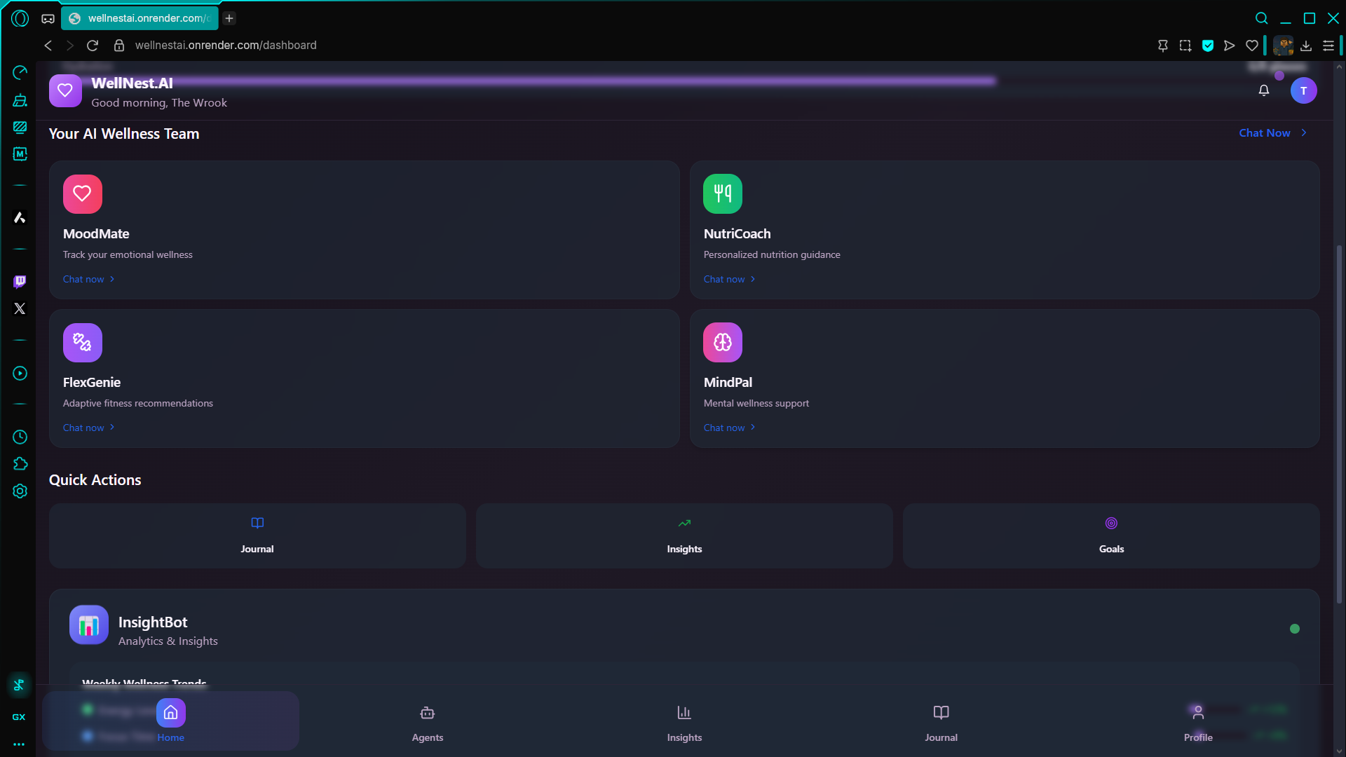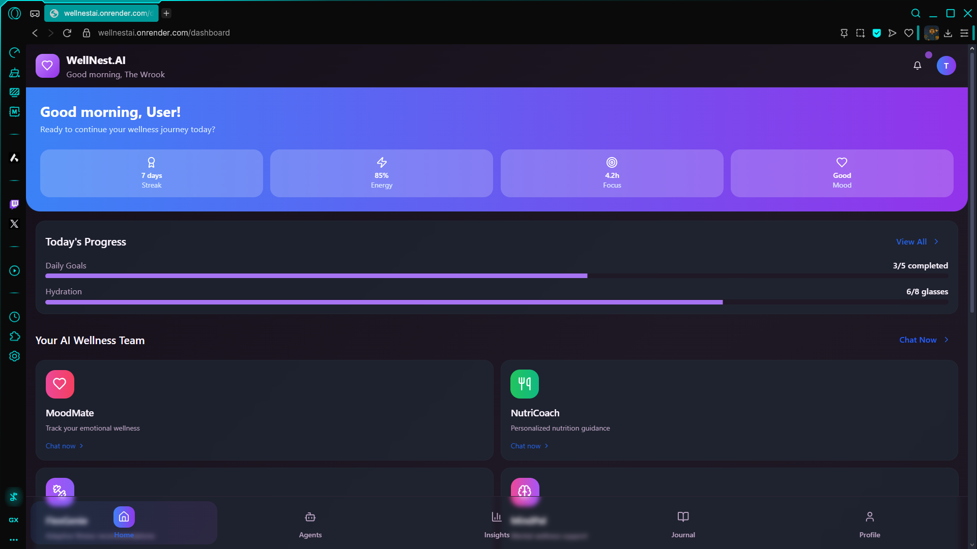 WellNest.AI is a personalized wellness platform powered by five specialized AI agents:
