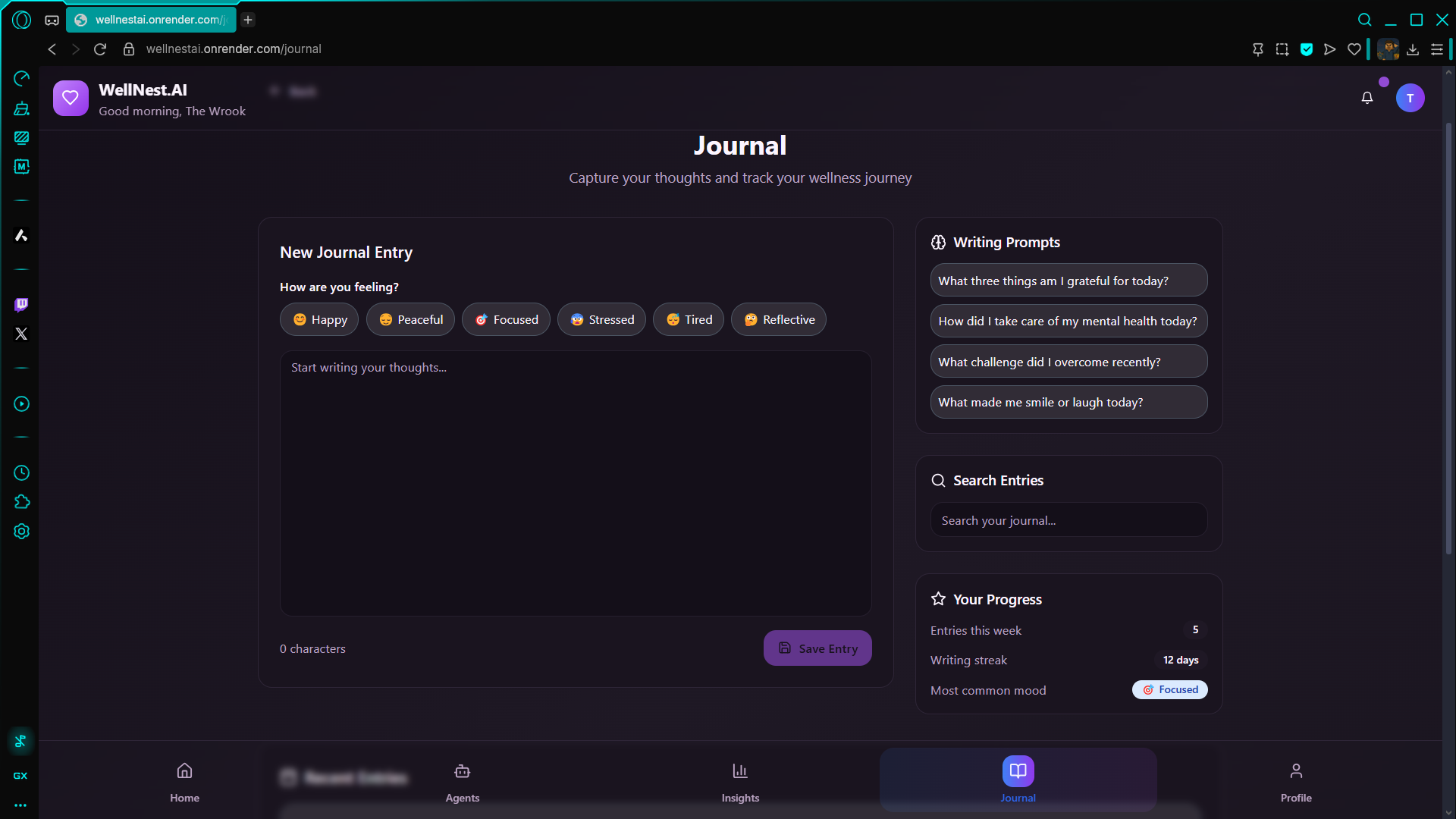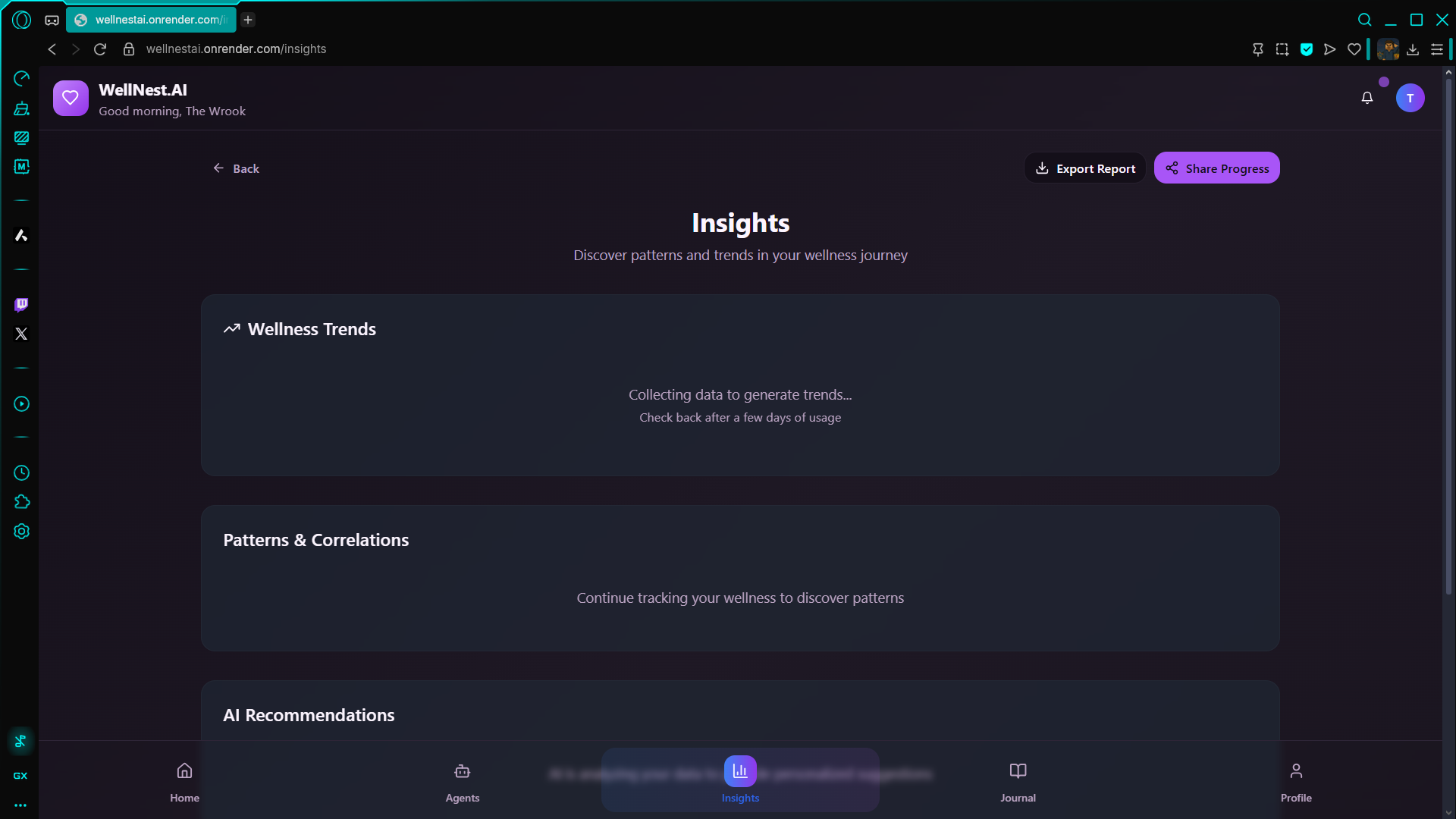 We noticed a common problem: wellness tools are fragmented. One app tracks fitness 🏃, another helps with meditation 🧘, and another logs nutrition 🥗. Managing all of them is overwhelming. We wanted to build a unified, AI-powered platform 🤖 that acts as a personal wellness companion, helping people manage their mental 🧠, physical 💪, and emotional ❤️ health seamlessly.