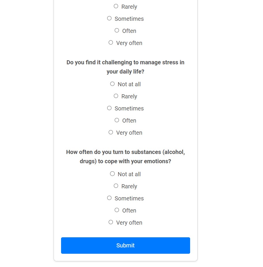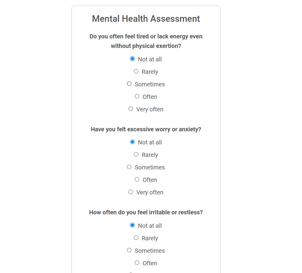 We have a working authentication using Firebase. We have built a react based quiz which show a score indicating mental health. We have provided a solution which connects an individual with mental disorders get in touch with doctors.