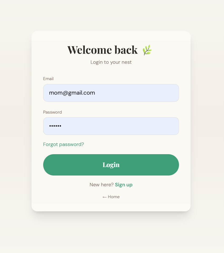 WellNest is a maternal wellness app with two connected experiences: Mother and Family.