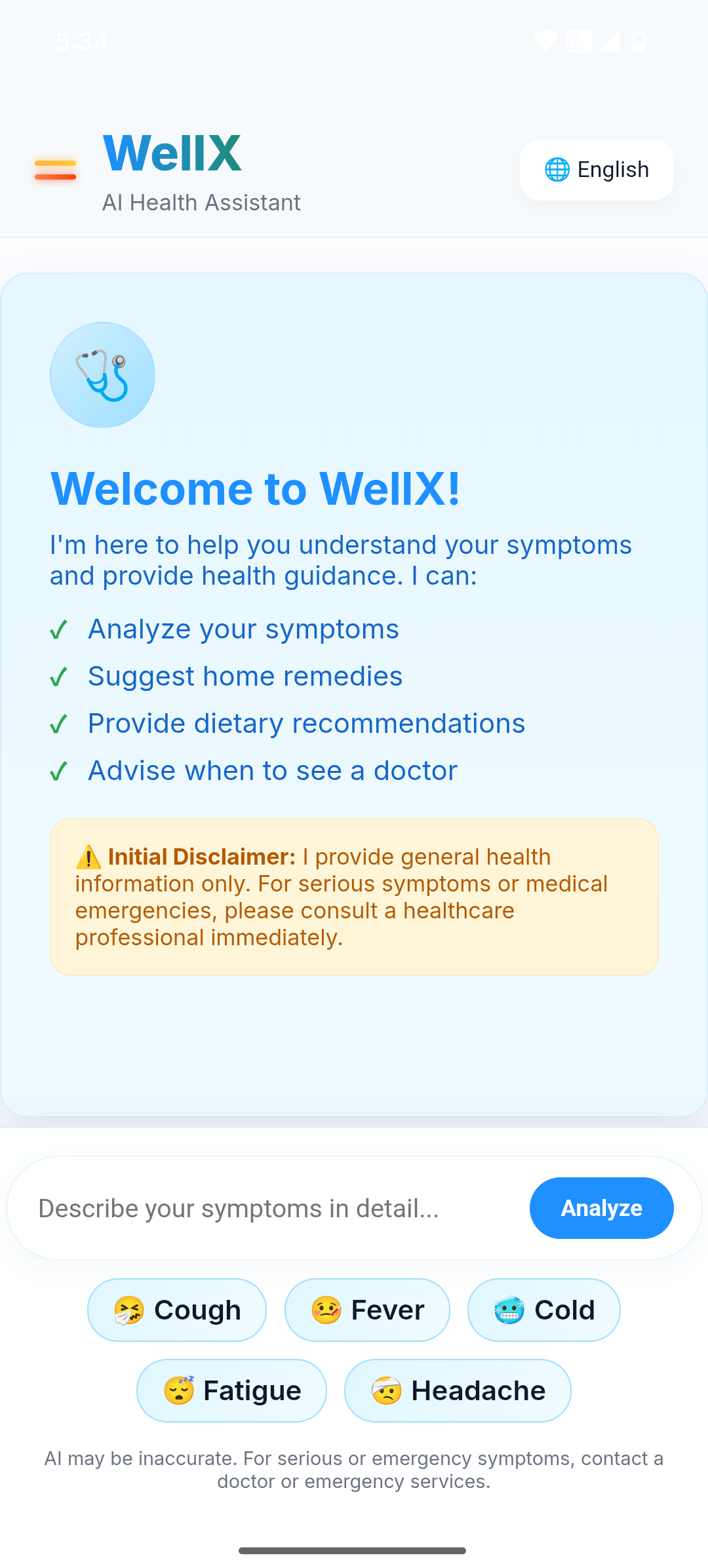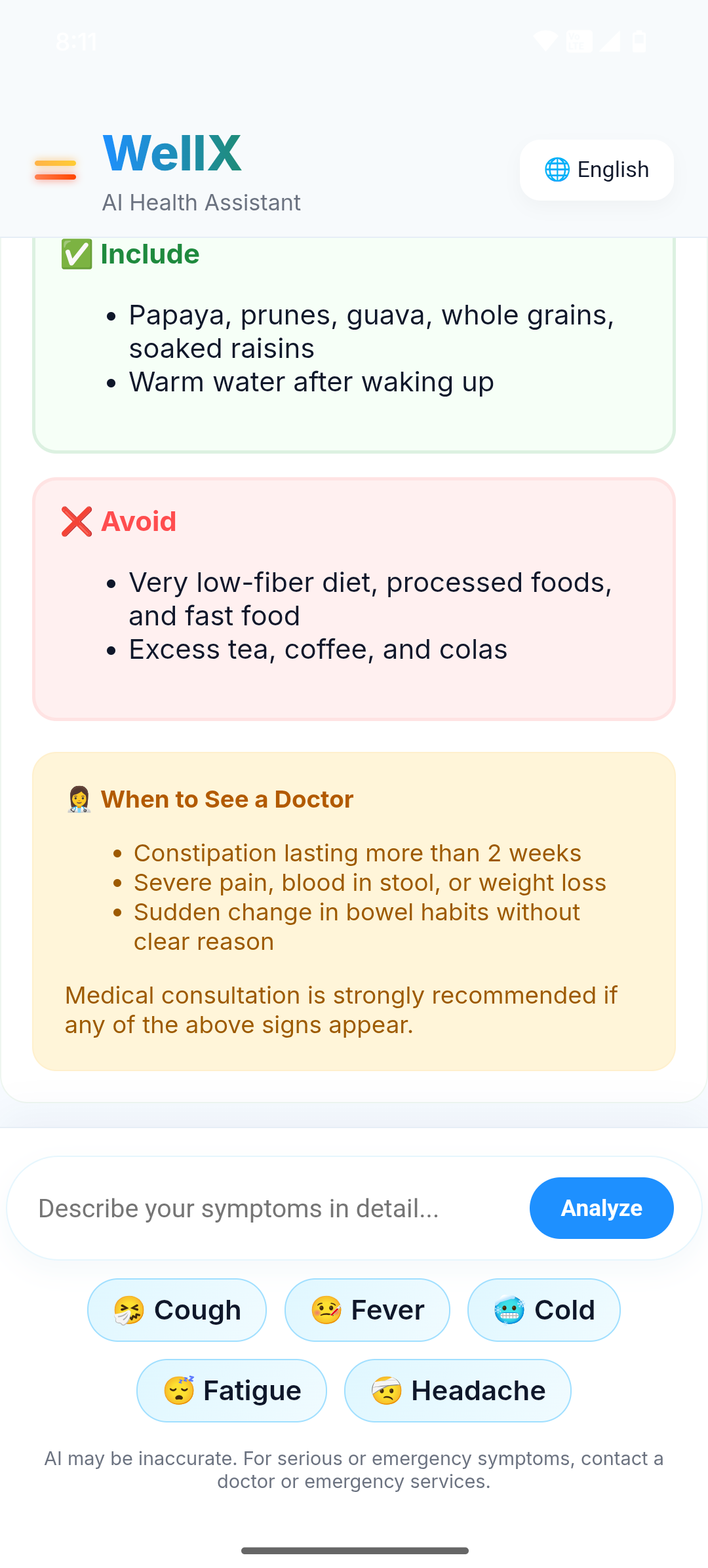 Add AI-based symptom analysis (by using api key - for better & accurate results)