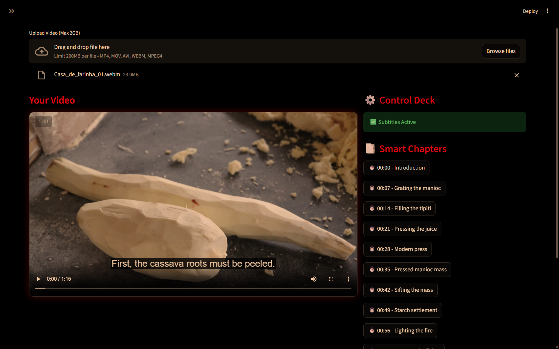 - VX Assisstant: VX Assisstant is an agent that uses Human-in-the-loop approach for iterative refinement; Users may report any instance of faulty subtitles/chapters/timestamps with reference (timestamps for subs and chapter names or indices for chapters), explain the issue and what changes should be made, and the agent would follow the User's instructions in correcting that part. By utilizing an iterative approach, the output is refined and personalized while accounting for any instances of hallucination. VX Assisstant offers semantic seek, user may describe the scene they wish to jump to, and the assisstant would perform that action and take them to that point in the video. The features are quick to access with smart chips, which introduce a dedicated inline input for selected feature (jump to, fix subs). Doing so avoids ambiguity in intent, ensuring accuracy and removing the need for user to provide context.