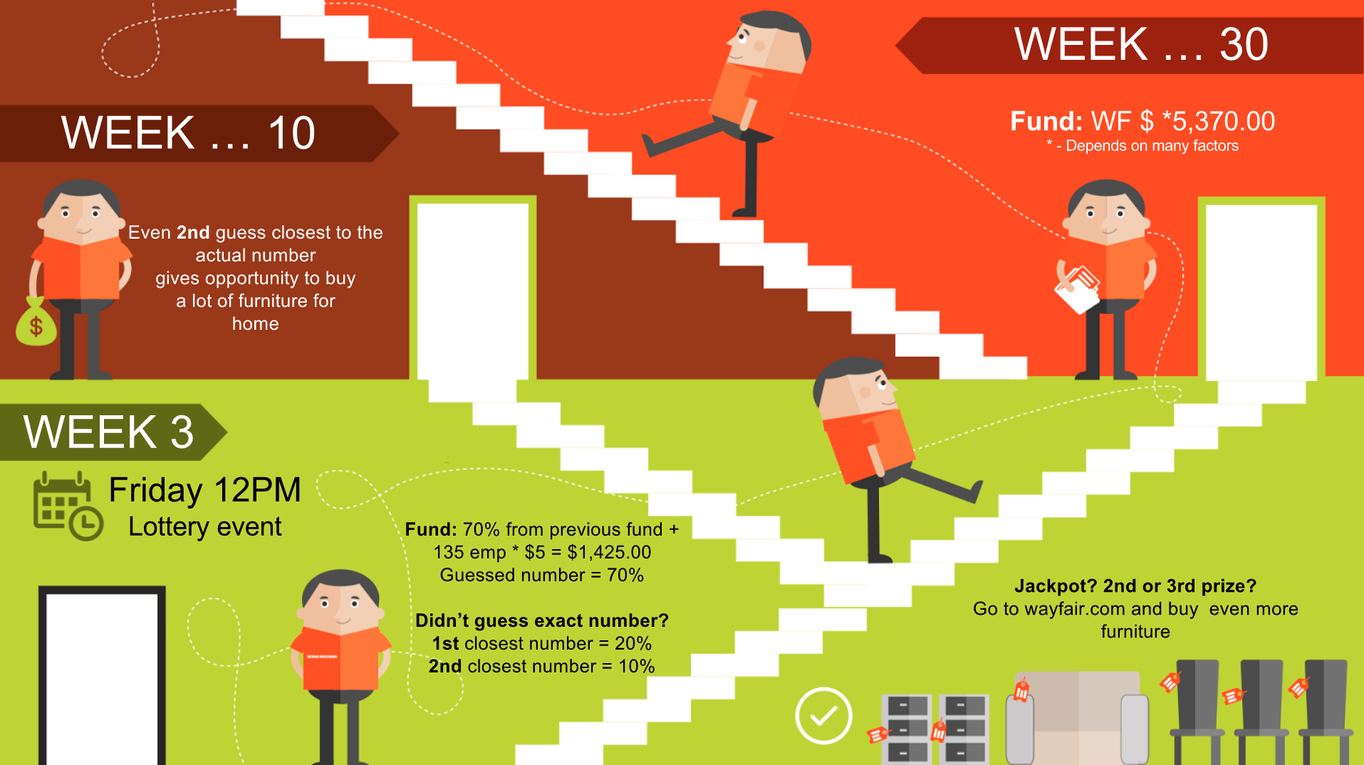 As a Wayfair employee, I want to have a posibility to take a risk with a betting my Reward Wayfair $ to win more WF $. Despite it brings a risk, it's like a game and so much fun.